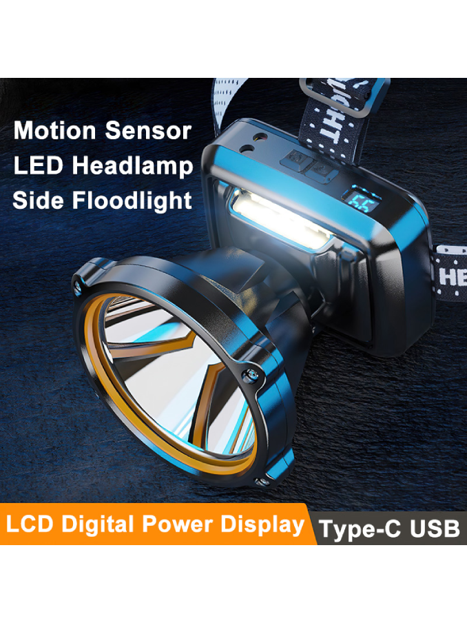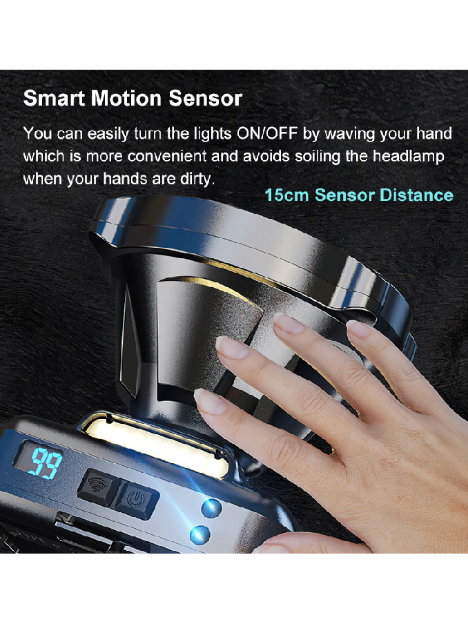 ABS Plastic Headlamp Deepen Reflector Cup 2400mAh Battery T9S SMD LED Head Torch LCD Digital Display 3000 Lumen Sensor Headlight