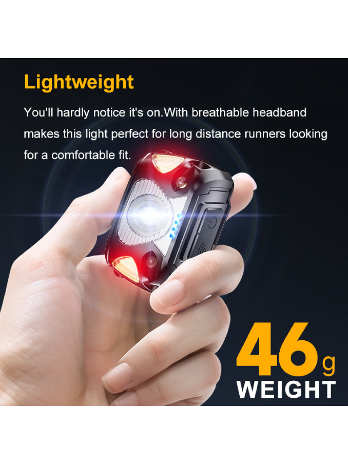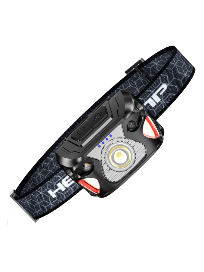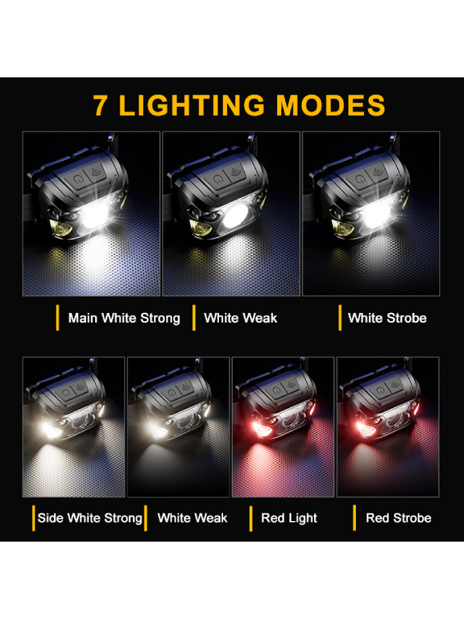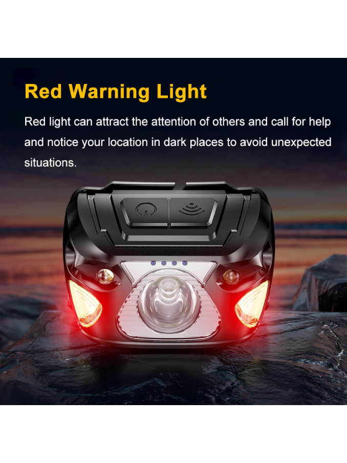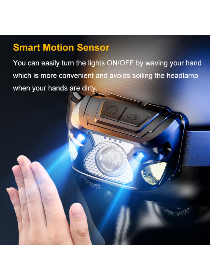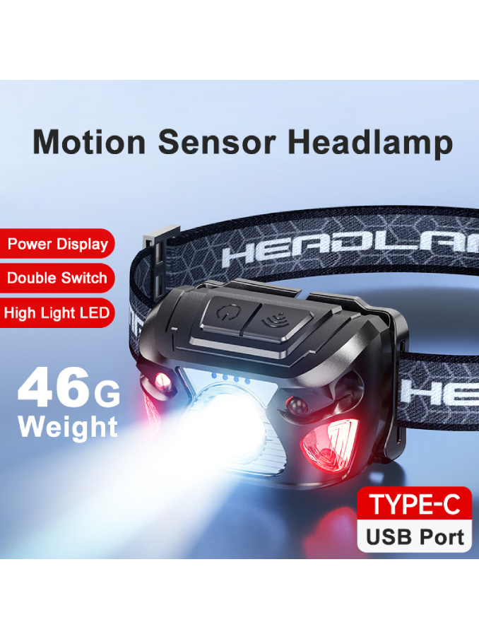 Smart Motion Sensor Headlamp Type-C USB Outdoor Head Lamp Power Display LED 7 Mode White Red Light Night Riding Hiking Headlight 10W