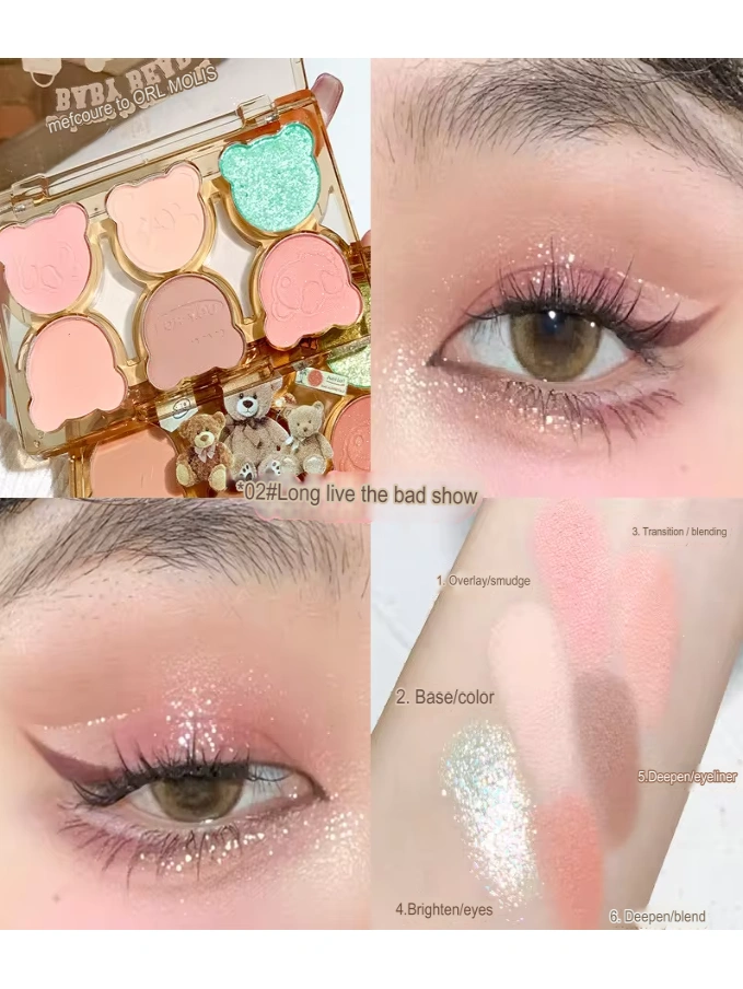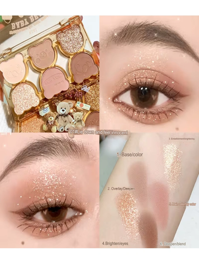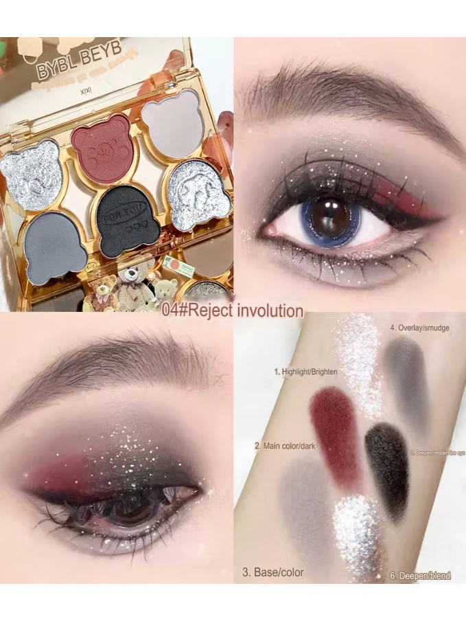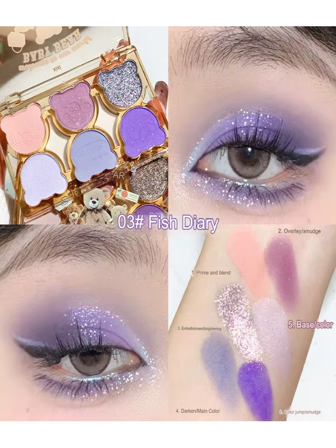 XIXI Baby Bear Purple Black Eye Shadow Waterproof Korean Makeup Eyeshadow Palette Make-up for Women Shiny Eyes Cosmetic Tools