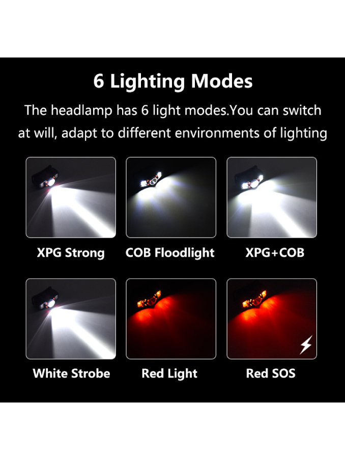 Outdoor Head Lamp White Red Light Smart Sensor Headlight