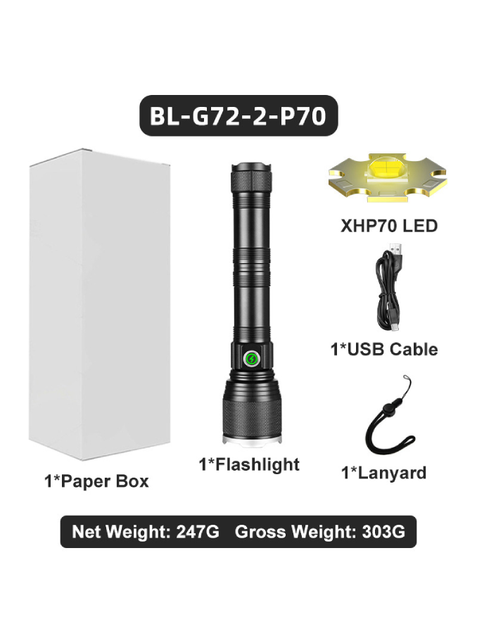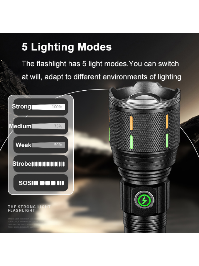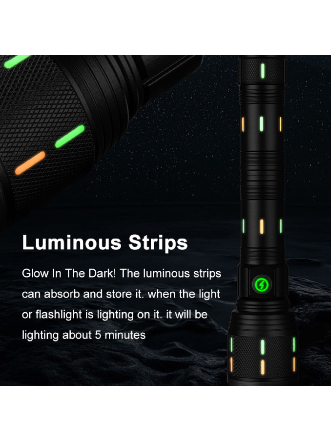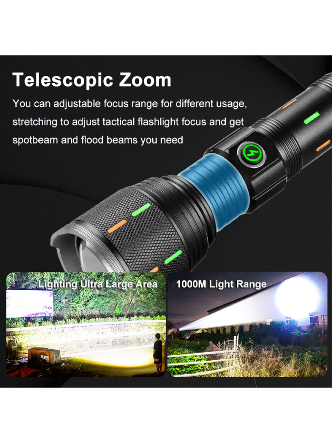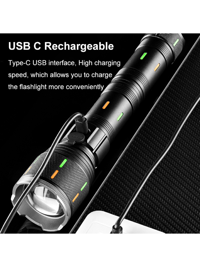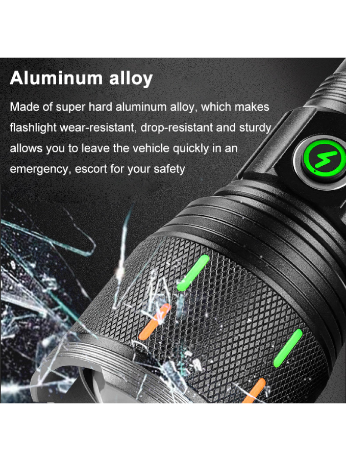 Aluminium Alloy Flashlight USB C Fluorescent Strip 12000 Lumens 30W LED Digital LCD Zoomable Outdoor Torch Emergency Flash Light