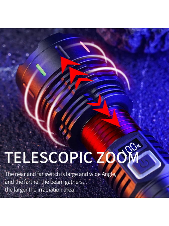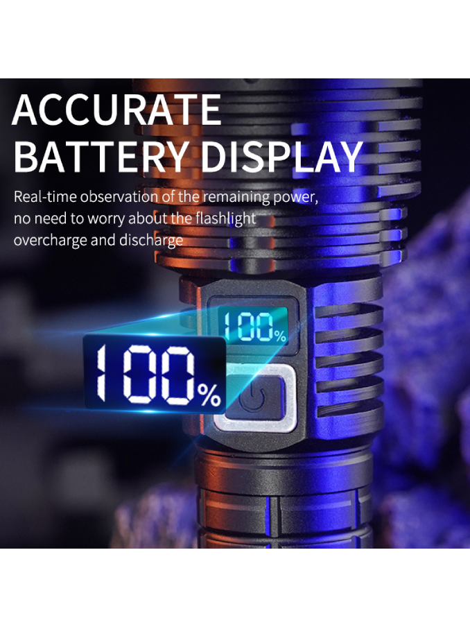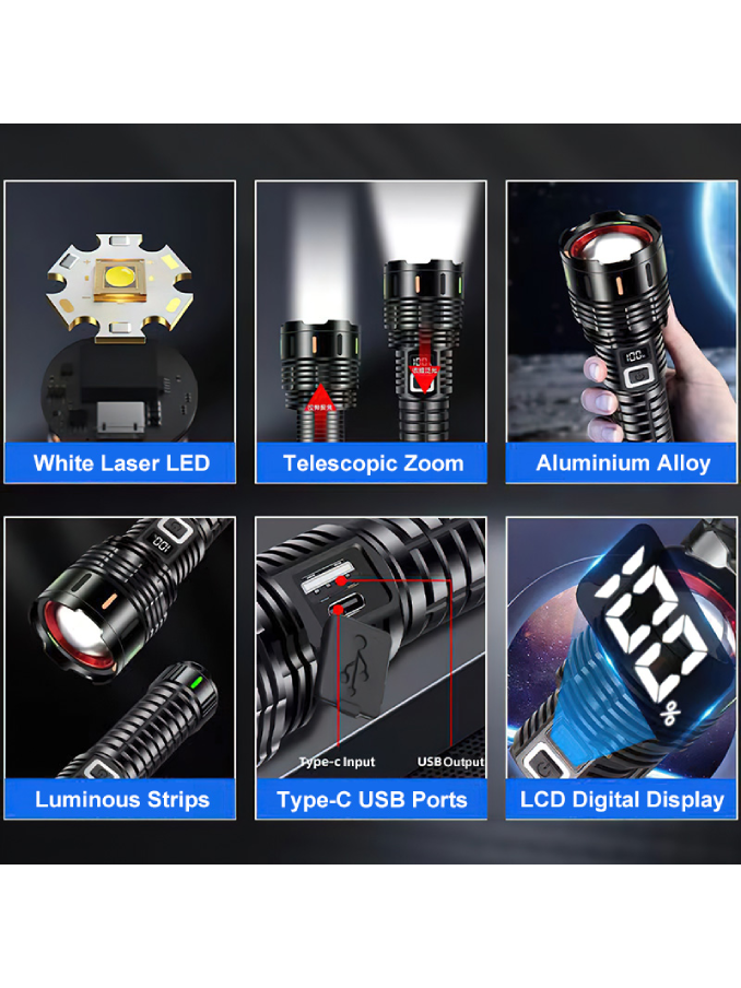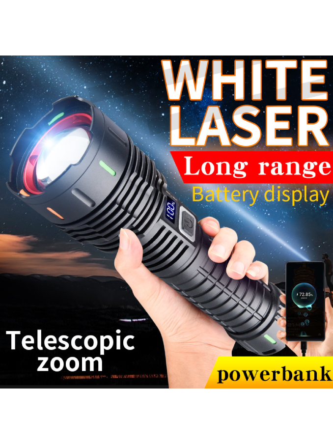 Aluminium Alloy Flashlight LCD Digital Display 8100 Lumens White Laser LED Zoomable Outdoor Torch Fluorescent Strip Flash Light