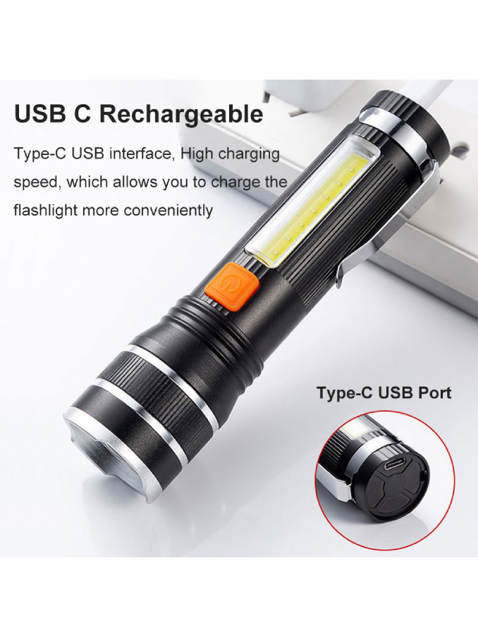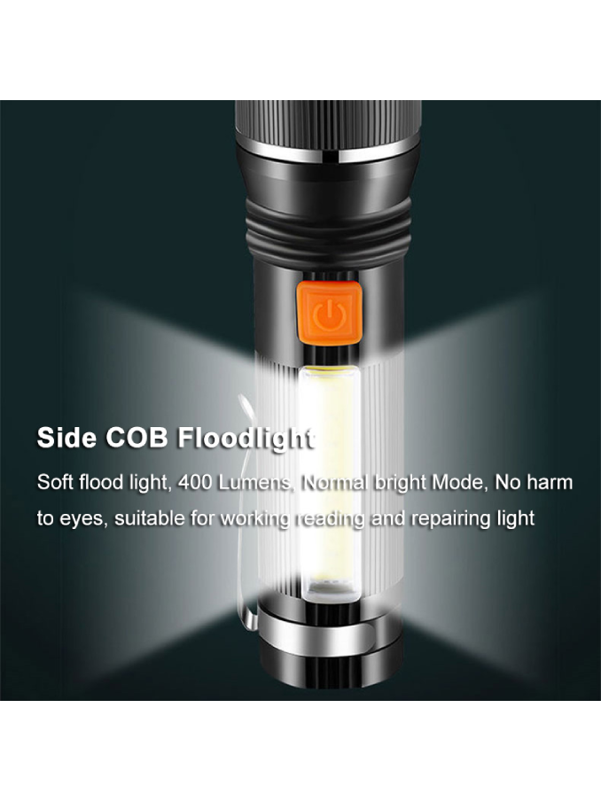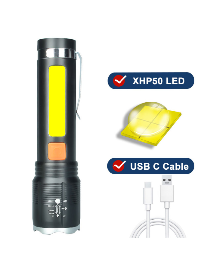 Aluminium alloy Flashlight Side COB Floodlight XHP50 LED Rechargeable 3600 Lumens Zoomable Outdoor Torch Emergency Flash Light