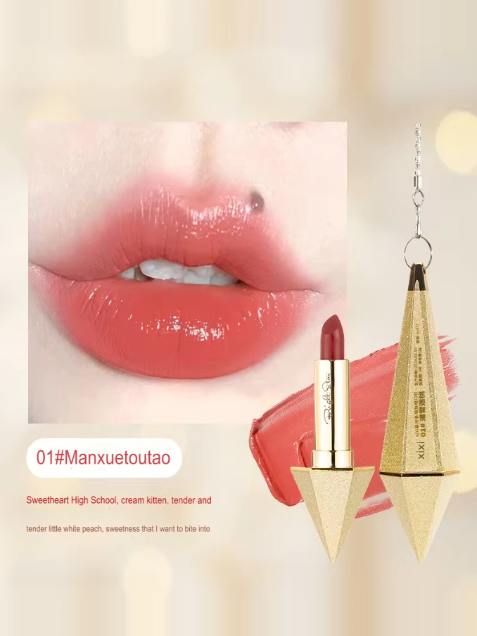 xixi diamond pipe moisturizing lipstick with chain student makeup mild daily velvet lipsticks 3 colors optional