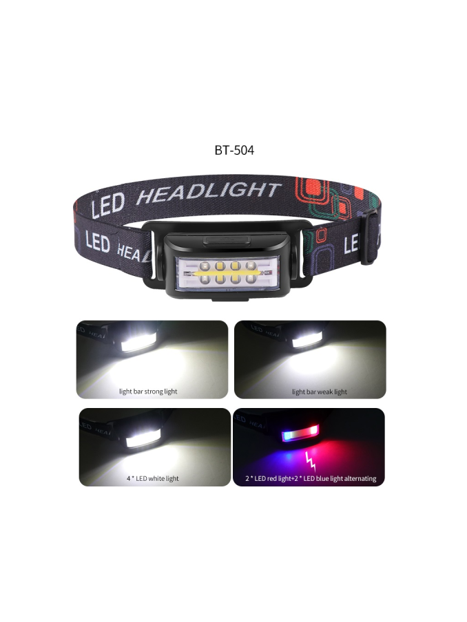 ABS Plastic PC Headlamp USB White Red Blue Light