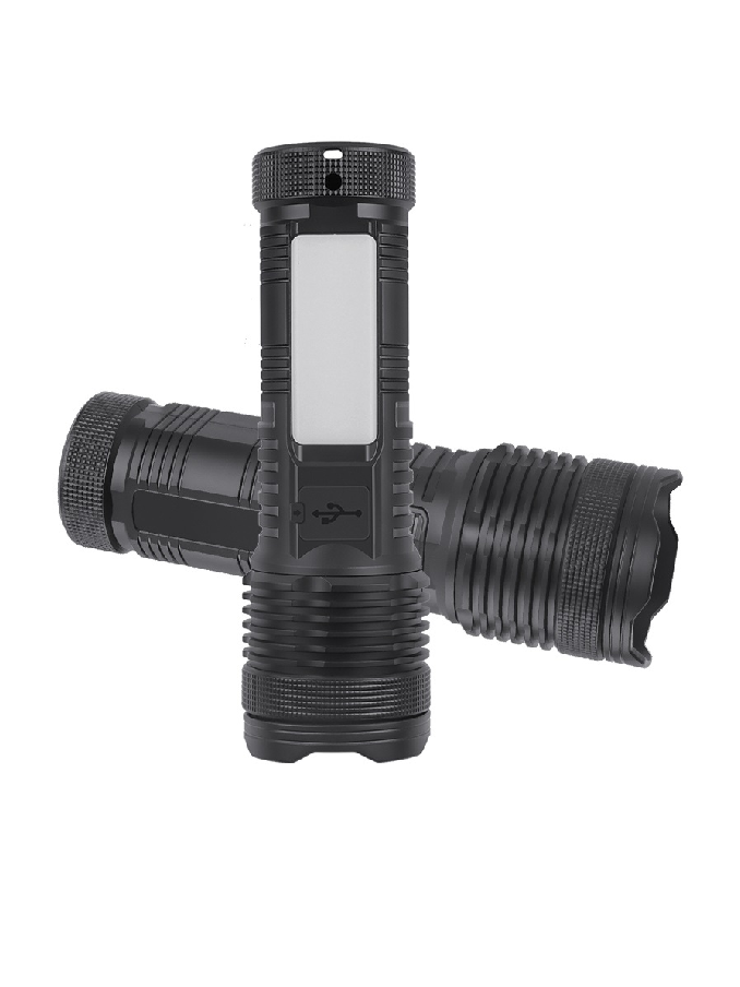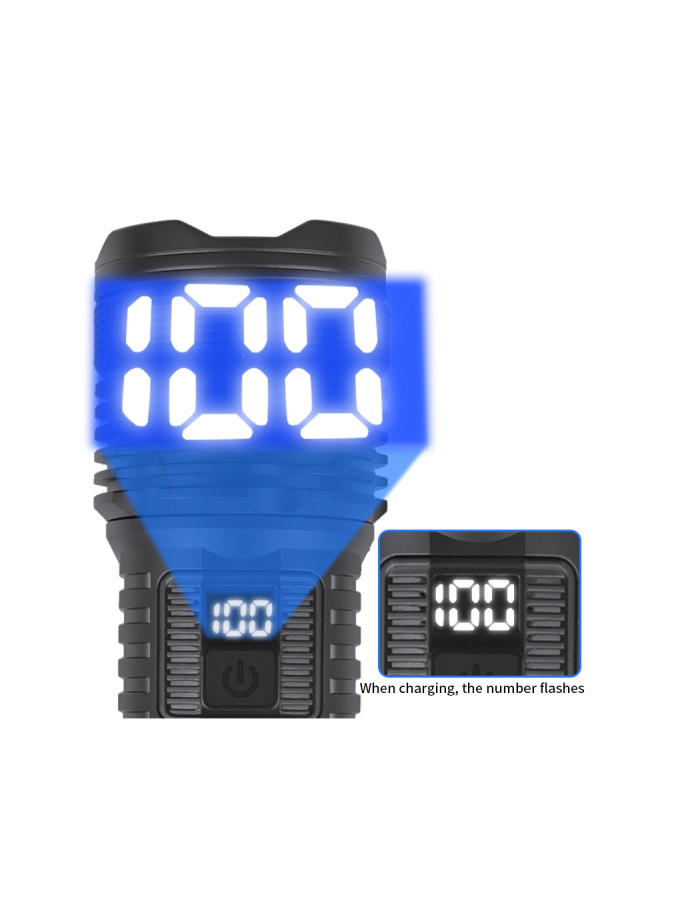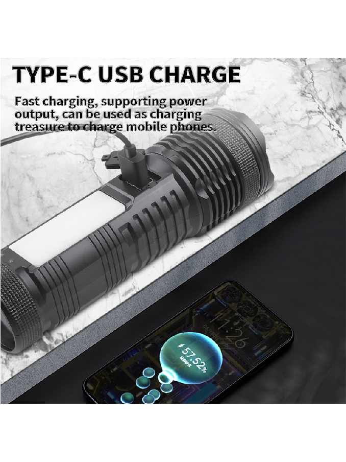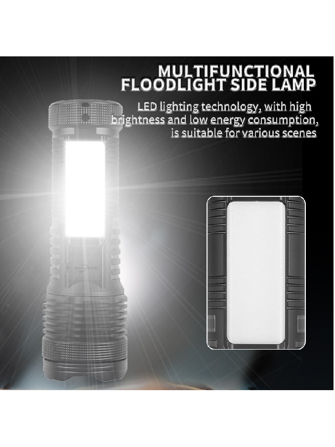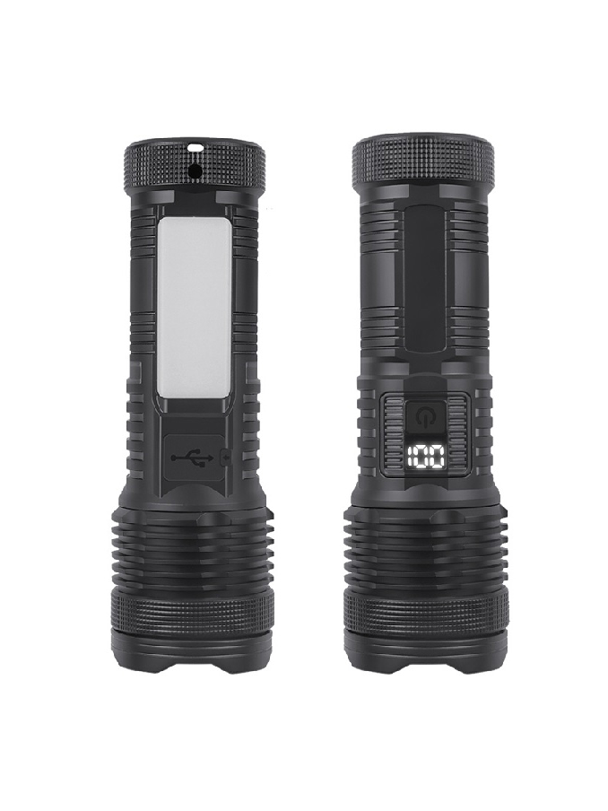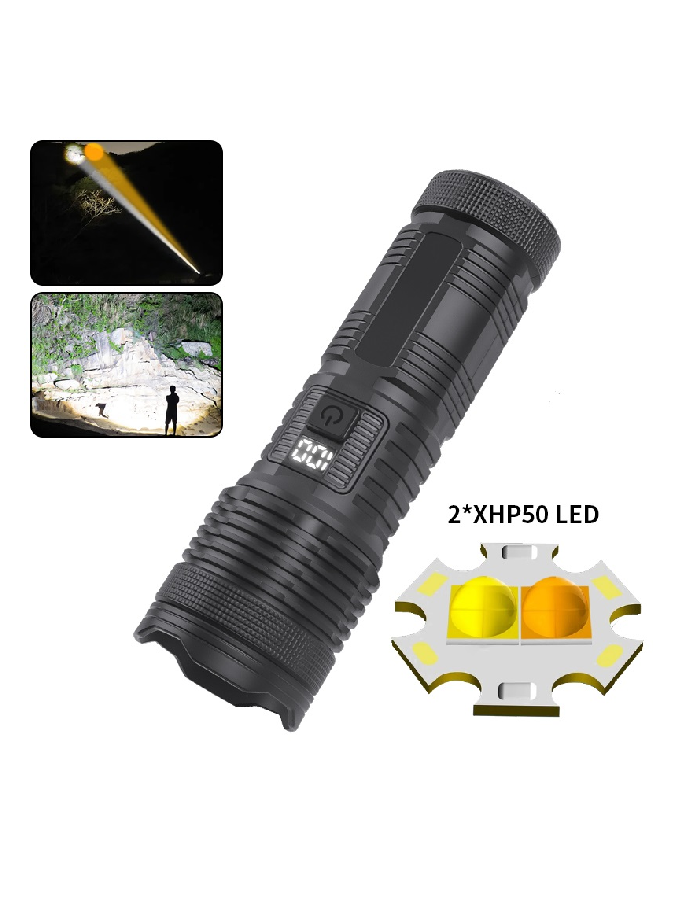 ABS Plastic Flashlight Two XHP50 LED White Yellow Light Side COB Floodlight Zoomable Digital Display 3600 Lumens Outdoor Torch
