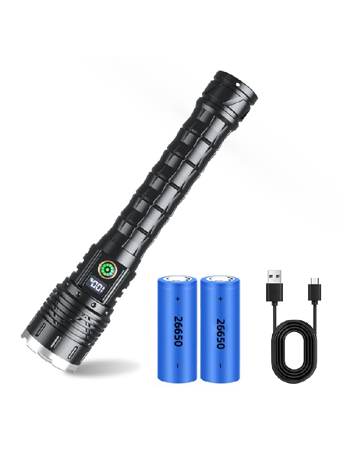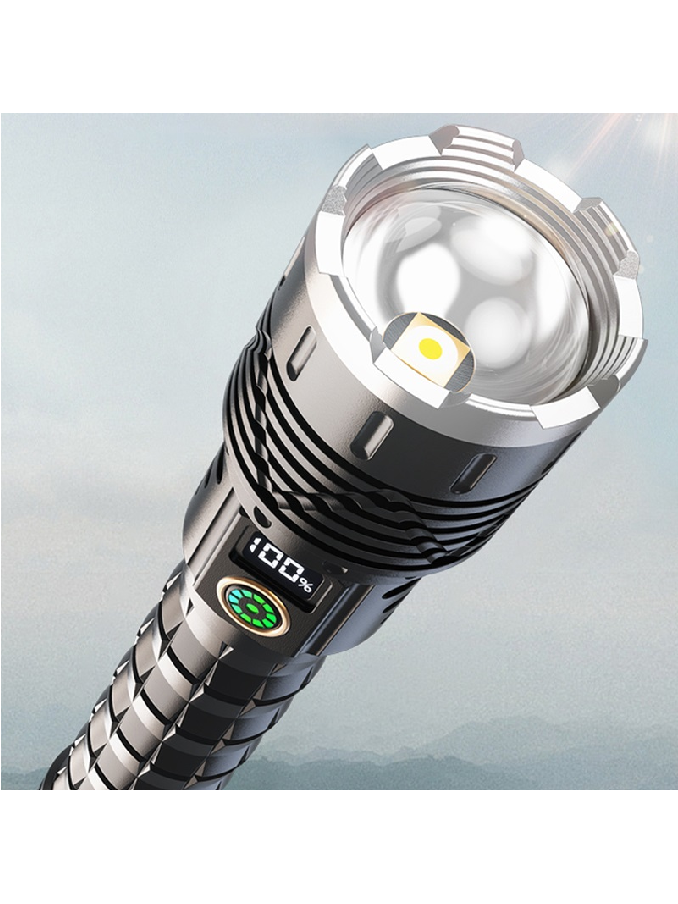 Aluminium Alloy Flashlight Digital Display Outdoor Torch 1000M Long Range Zoomable 30W LED 27000 Lumens Super Bright Flash Light