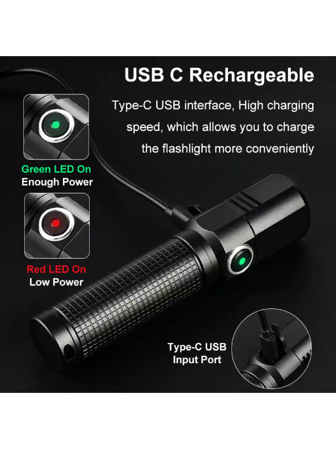 Super Bright Mini Flashlight Type-C USB XHP50 LED