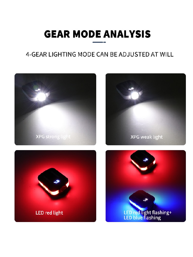 ABS Headlamp Clip on Hat Cap USB Digital Display Hiking Night Riding Running Red Blue Light XPG LED Headlight Working Head Lamp