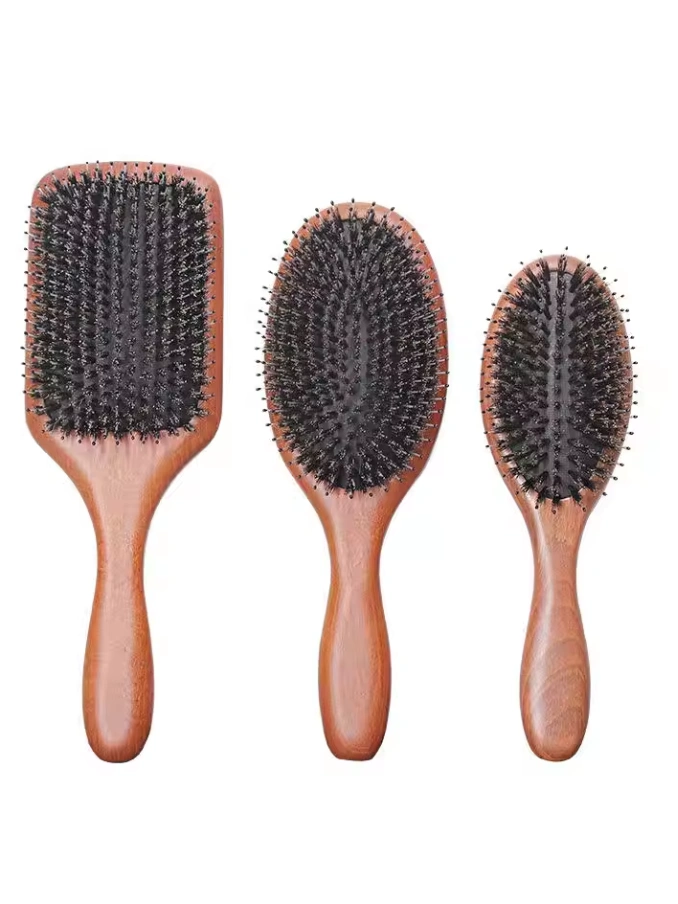 LUMA 3 Sizes Natural Wooden Boar Bristle Brush Soft Nylon Tooth Hair Extension Brush