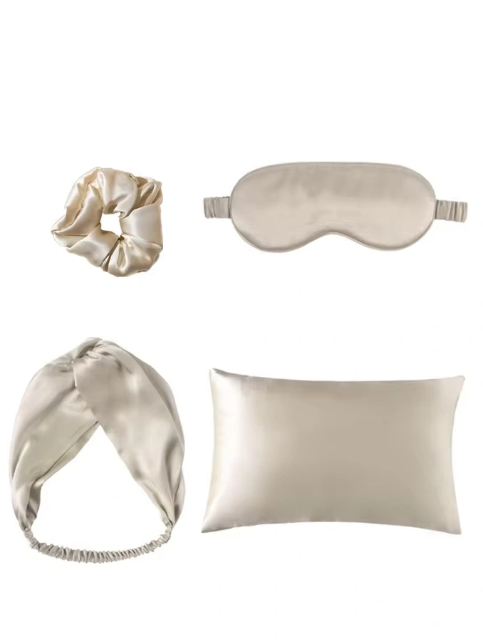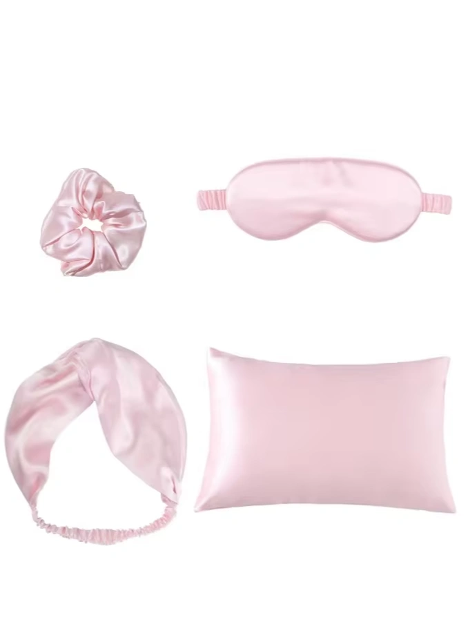 4Pcs a Set Satin Pillowcase With Hidden Zipper, Adjustable Satin Eye Mask For Sleeping, And Satin Volume Scrunchies headband