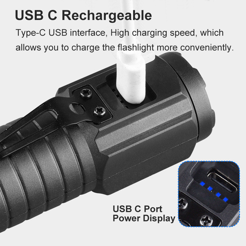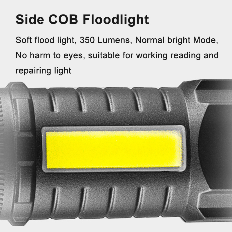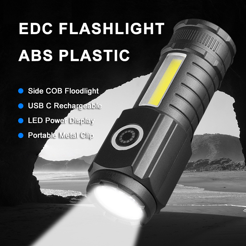 ABS Plastic EDC Flashlight 2000 High Lumens LED Side COB Light 4 Modes Rechargeable Torch Outdoor Emergency Lighting