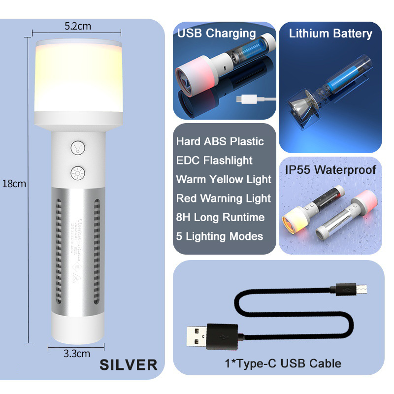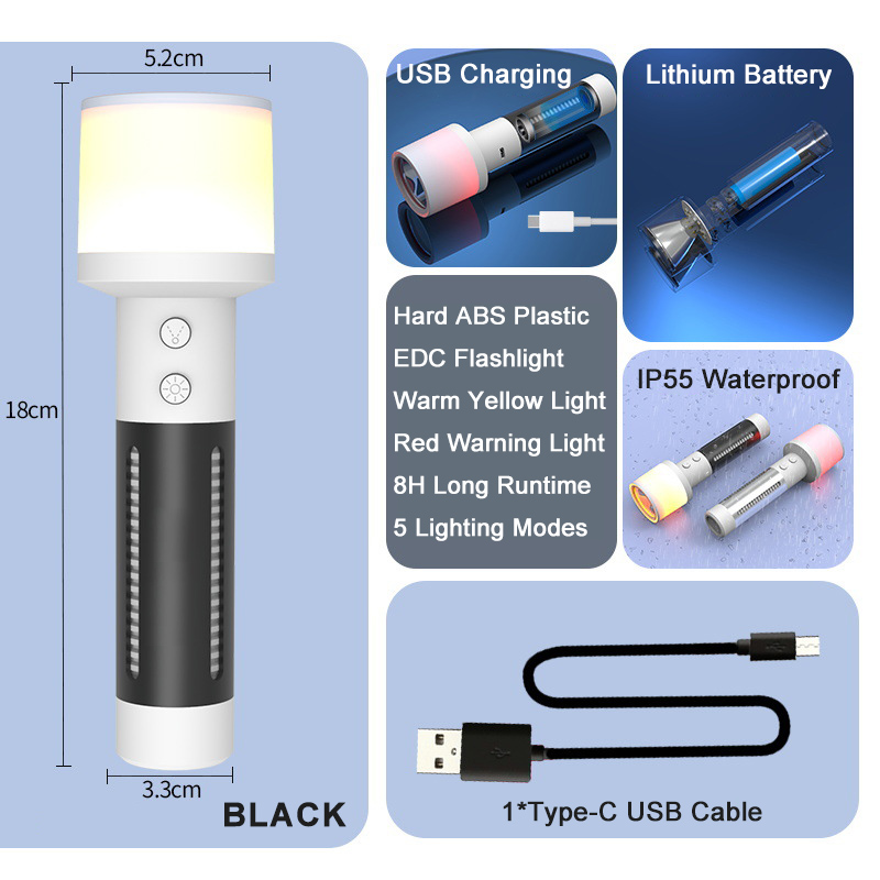Ultra Bright EDC Flashlight ABS Plastic Rechargeable with LED COB Warm Light Handheld Flashlights Emergency Hiking Working Torch