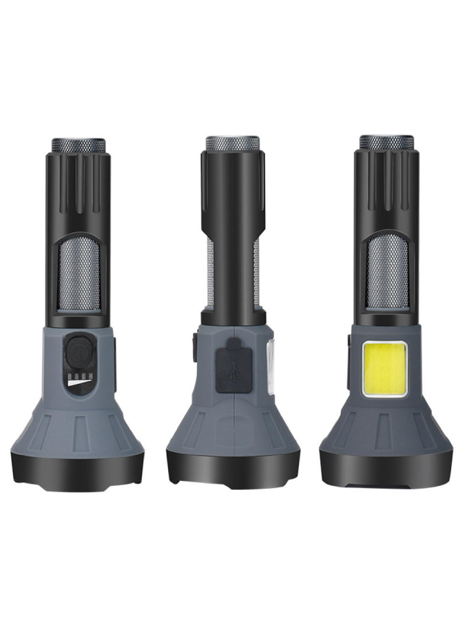 USB Rechargeable Handheld Flashlight 4 Lighting Modes COB Soft Light LED Flashlights Powerful Outdoor Hard ABS Plastic Torch