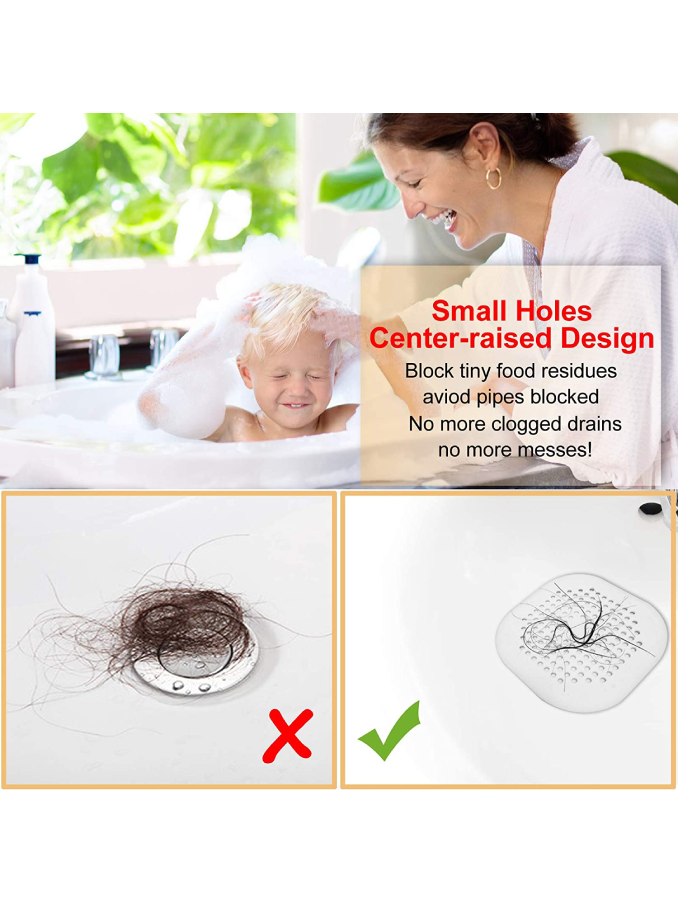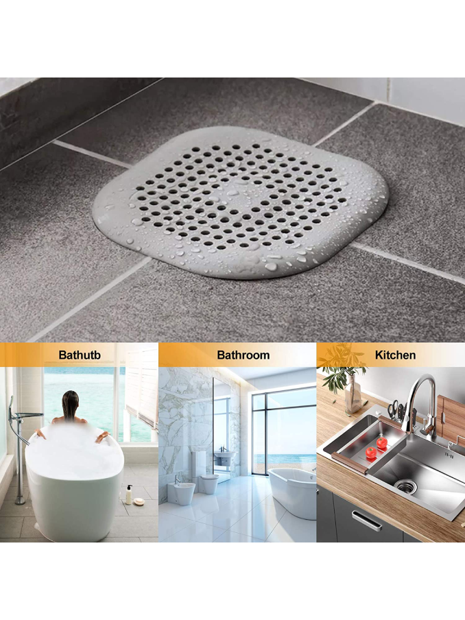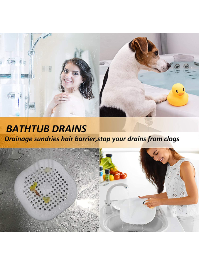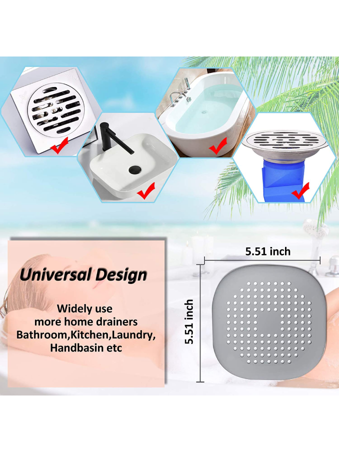 Hair Catcher Square Drain Cover Silicone Hair Stopper with Suction Cup Easy to Install Suit for Shower Bathroom Bathtub Kitchen