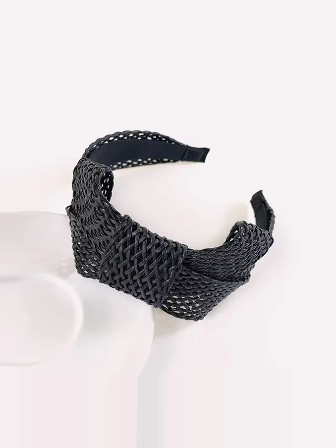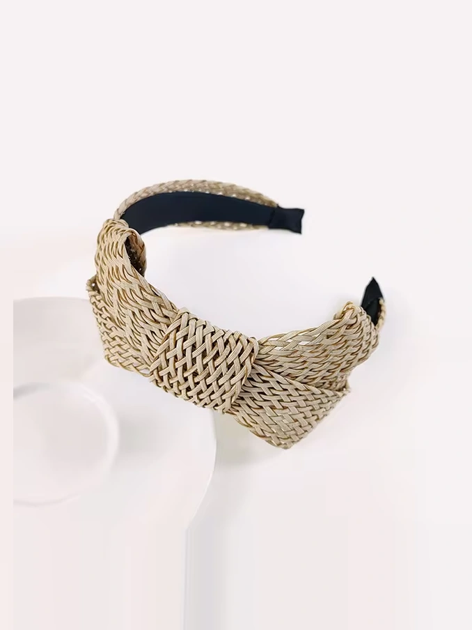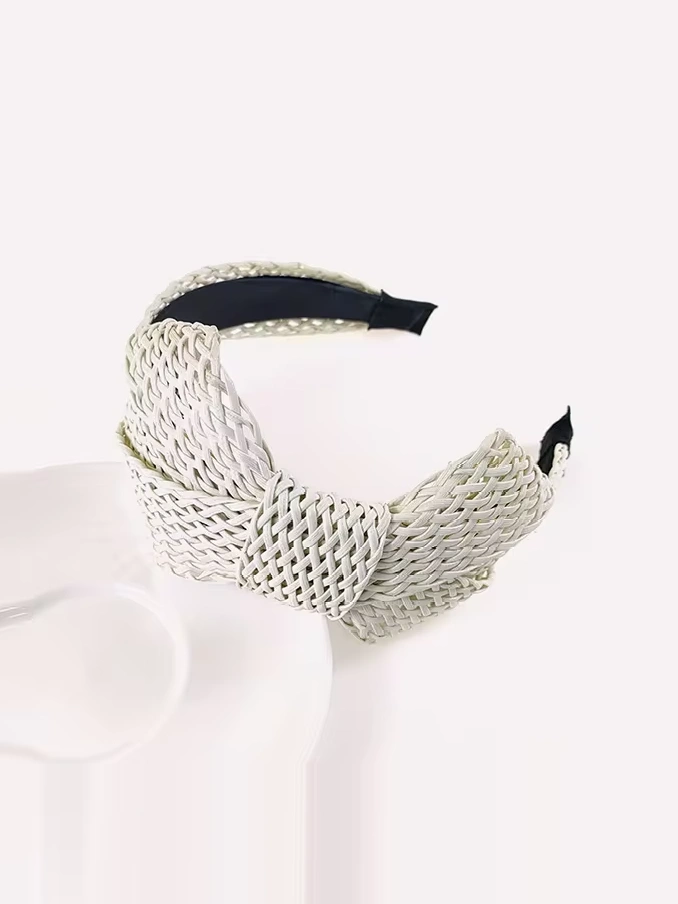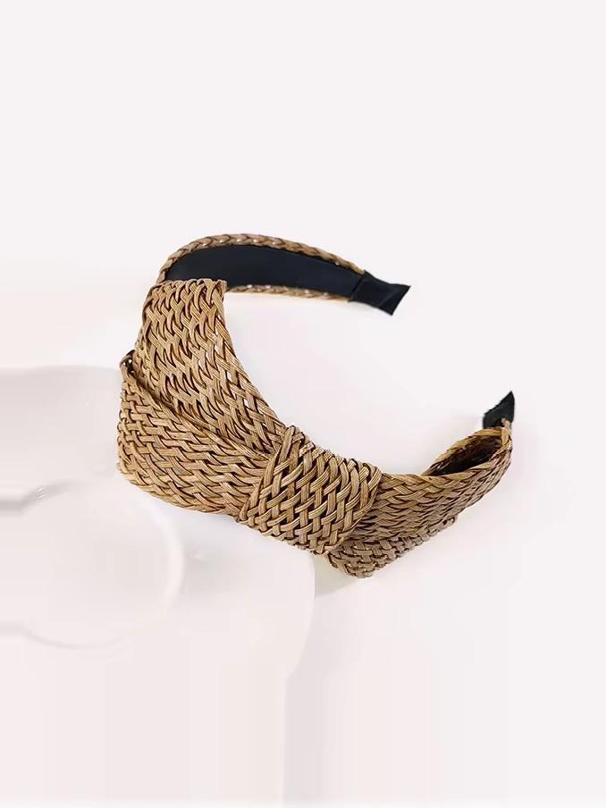 Pure Color Wide Version Straw Mat Woven Bow Headband Ladies Headdress Hair Accessories