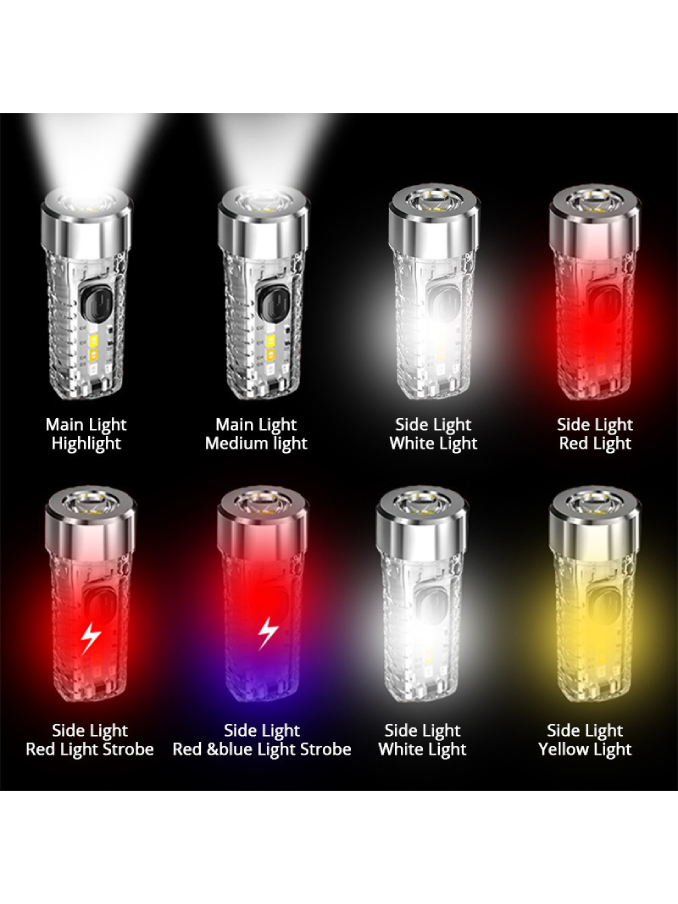 USB Rechargeable Light Emergency Torch 8 Mode Red Yellow White Blue Light Outdoor Keychain Pocket Light Mini Keychain Flashlight