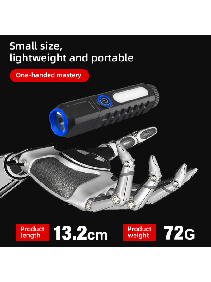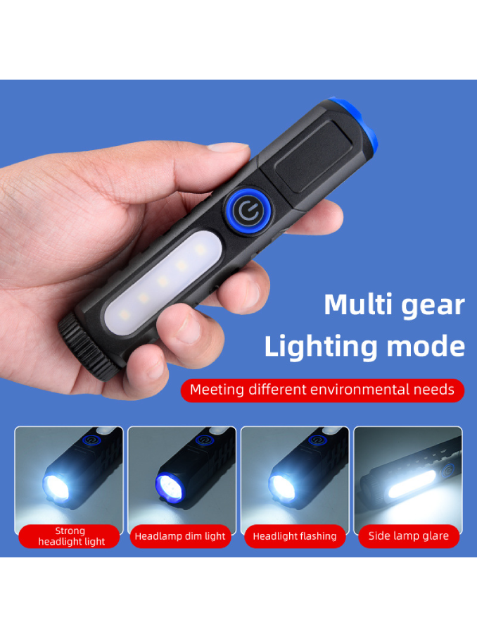 Tactical Flashlight Hard Plastic Super Bright Rechargeable with Led COB Work Light Handheld Flashlights Emergency Hiking Torch