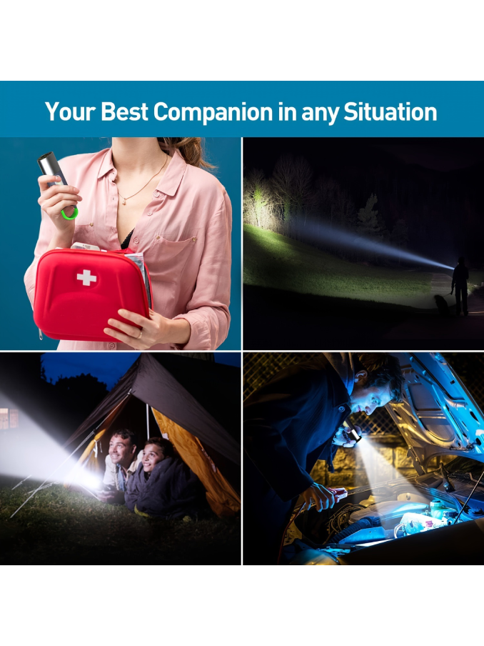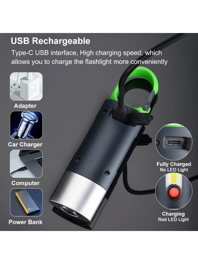 Main images (6) Product video (1) Description images All images Powered by AliMedia Working Light LED Tactical Flashlight USB Rechargeable Super Bright with Snap Hook Waterproof Flashlights for Emergency Camping