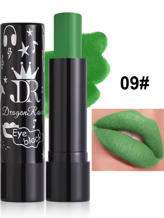 Dragon Ranee matte fog lipstick European and American style dark purplish red green white lipstick face black painted