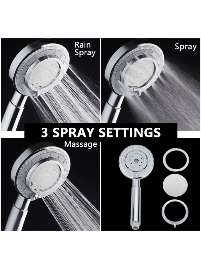 High Pressure Shower Head Bath Shower Adjustable Jetting Water Saving Handheld Bathroom 3 Modes SPA Shower Bath Head