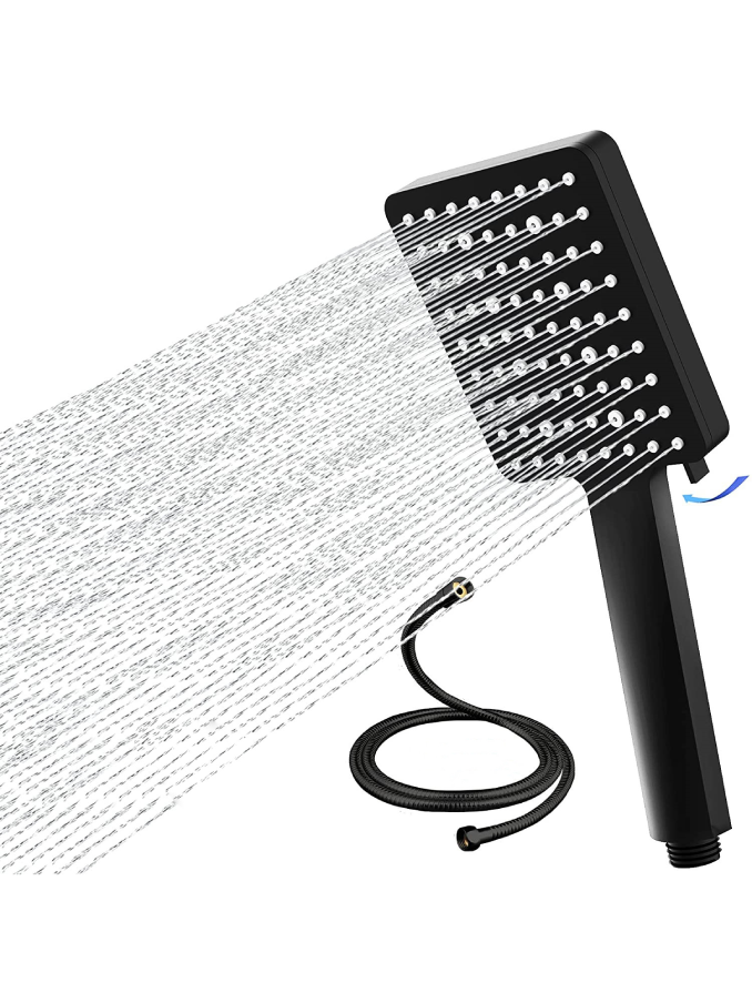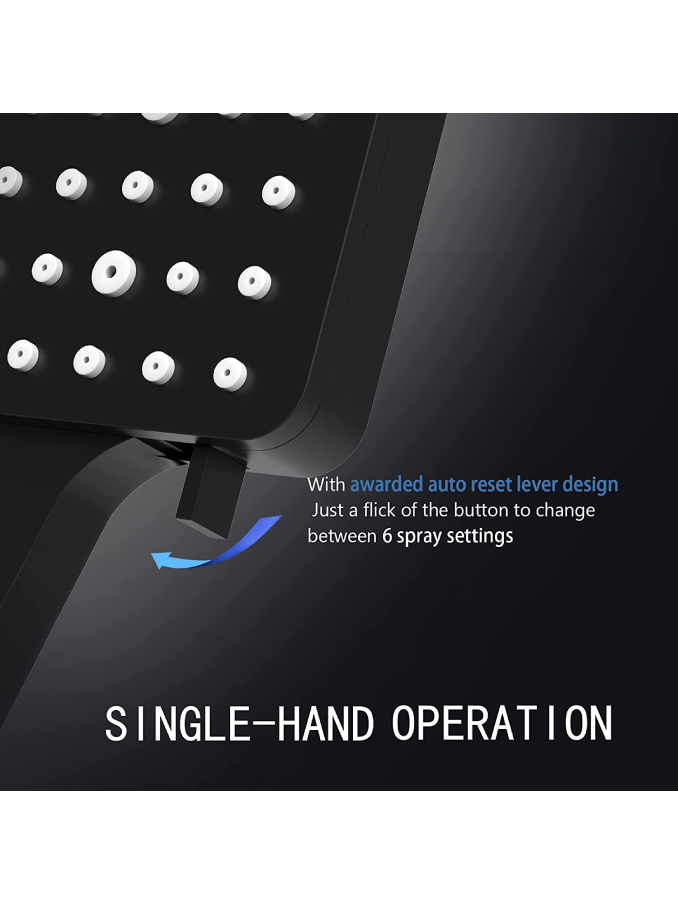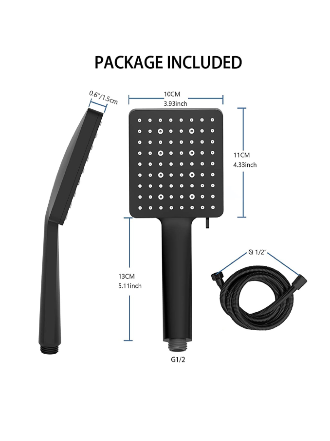 High Pressure Shower Head with Handheld 6 Spray Modes Shower Head 150M Stainless Steel Hose Square Showerhead Matte Black Finish