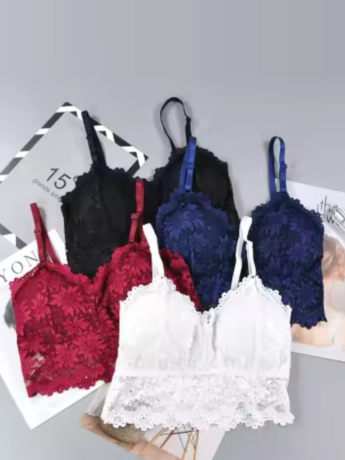 Women Sexy Fitness Underwear Floral Lace Removable Padded Bra