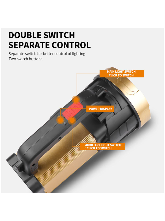 Rechargeable Handheld Flashlights Spotlight 6 Modes Waterproof Spotlight Type-C USB 9000 Lumens for Emergency Home Outdoor Fish