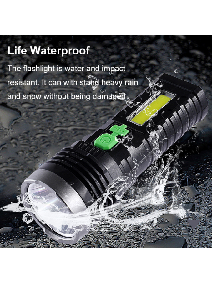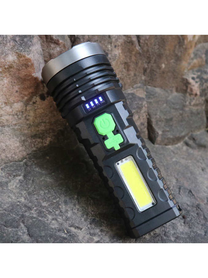 LED Handheld Flashlight 4 Modes Rechargeable 1800 Lumens Super Bright Flashlight with COB Work Floodlight Outdoor Portable Torch