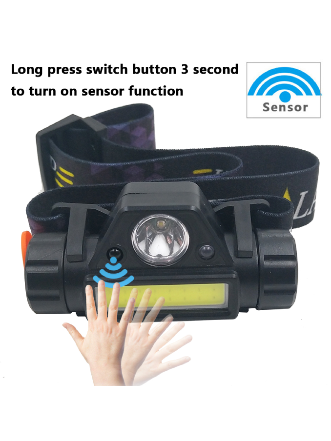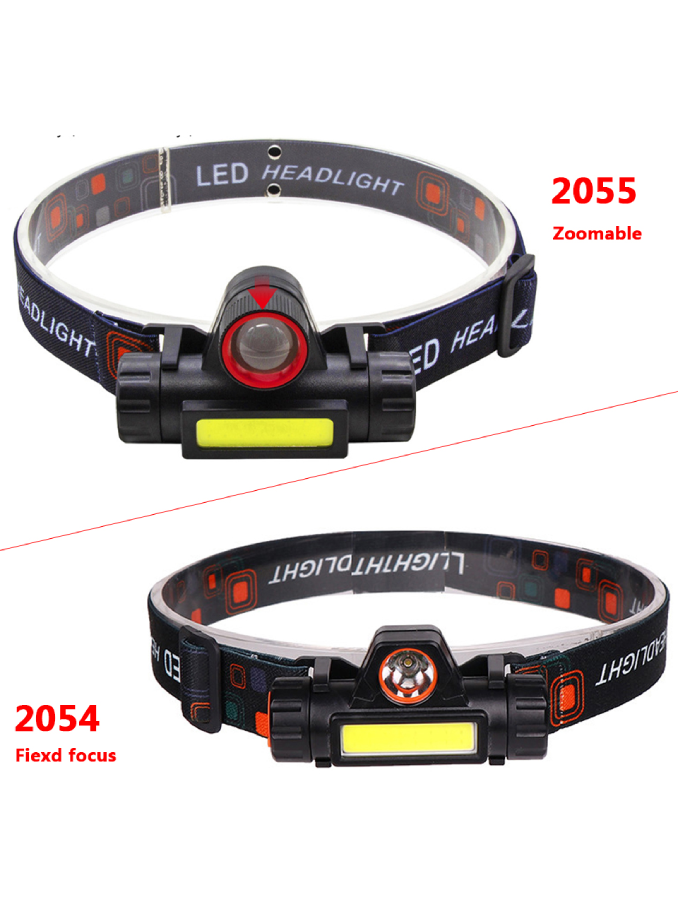 Zoomable Built-in Battery Camping Powerful LED Headlamp COB