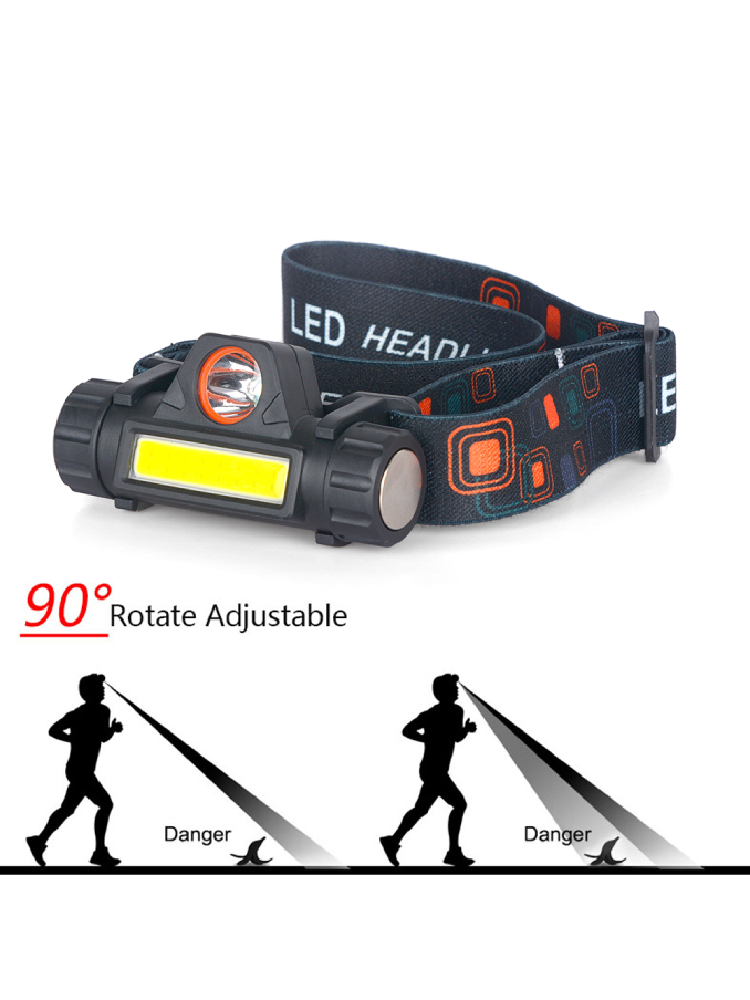 Zoomable Built-in Battery Camping Powerful LED Headlamp COB USB Rechargeable Headlight Waterproof Head Torch Head Lamp Lantern