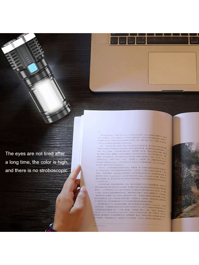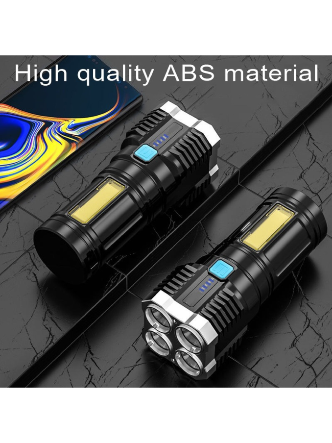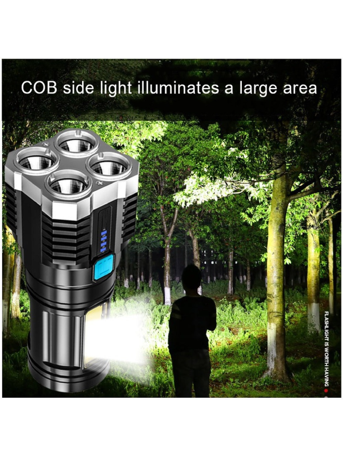 4-core Super Bright Flashlight Rechargeable Outdoor Multi-function Led Long-range Spotlight Battery Display COB Light
