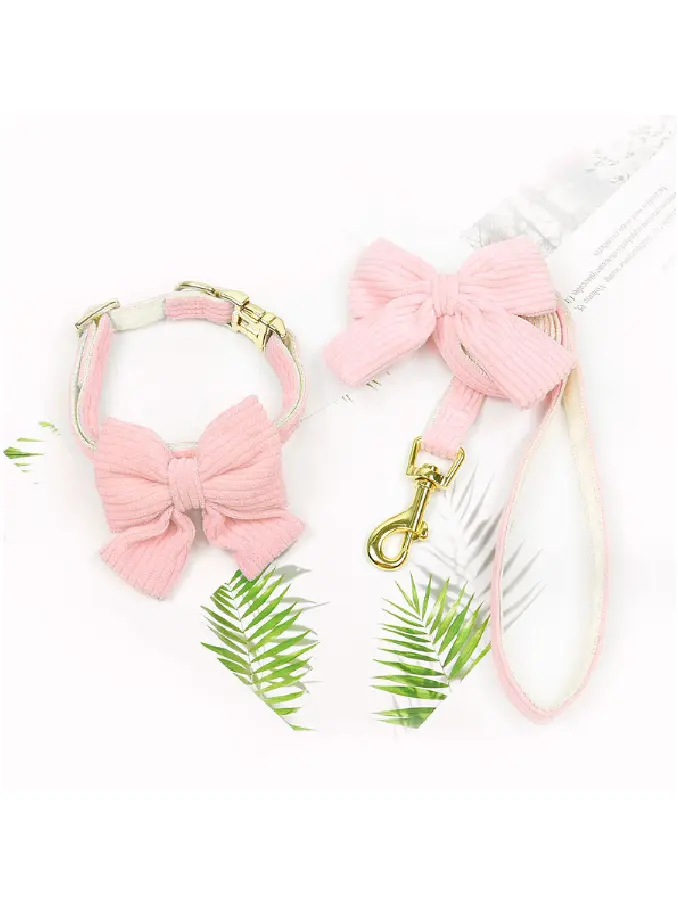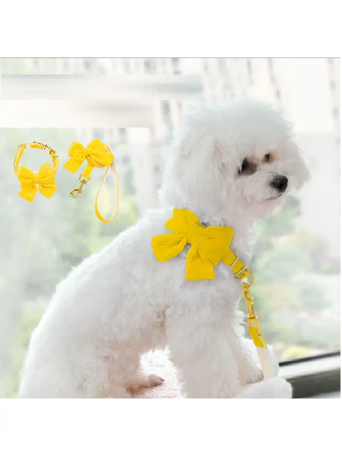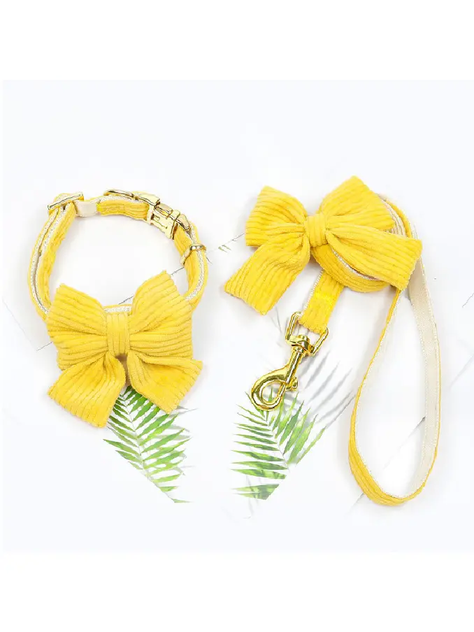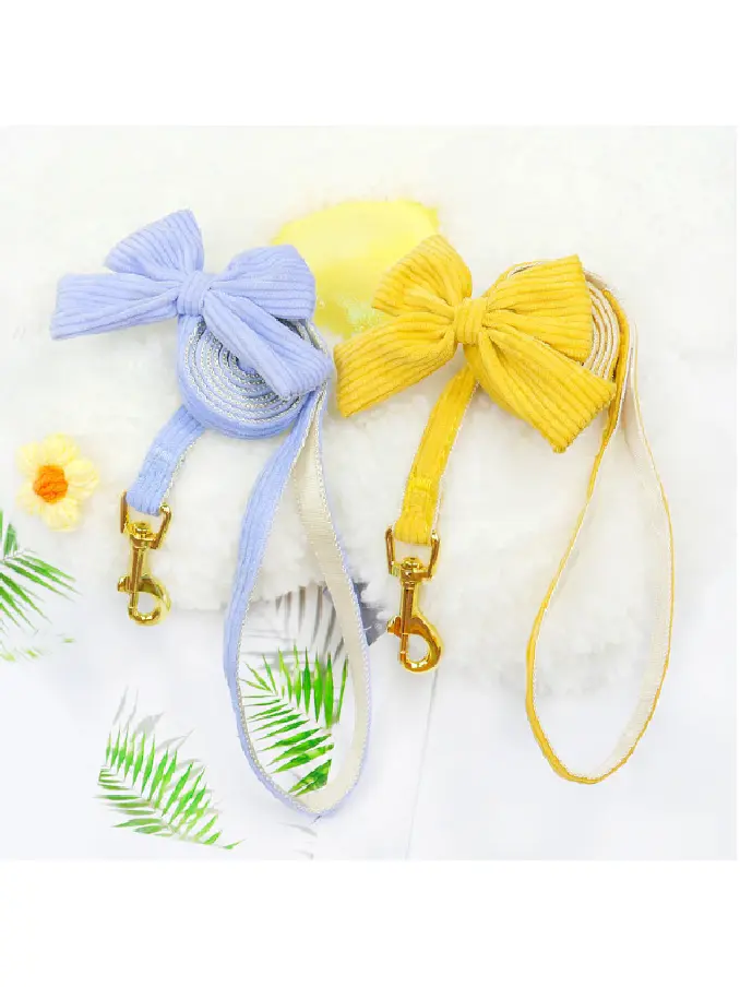 Lovely Bow Soft Cotton Dog Pet Harness Set (Harness And Leash)