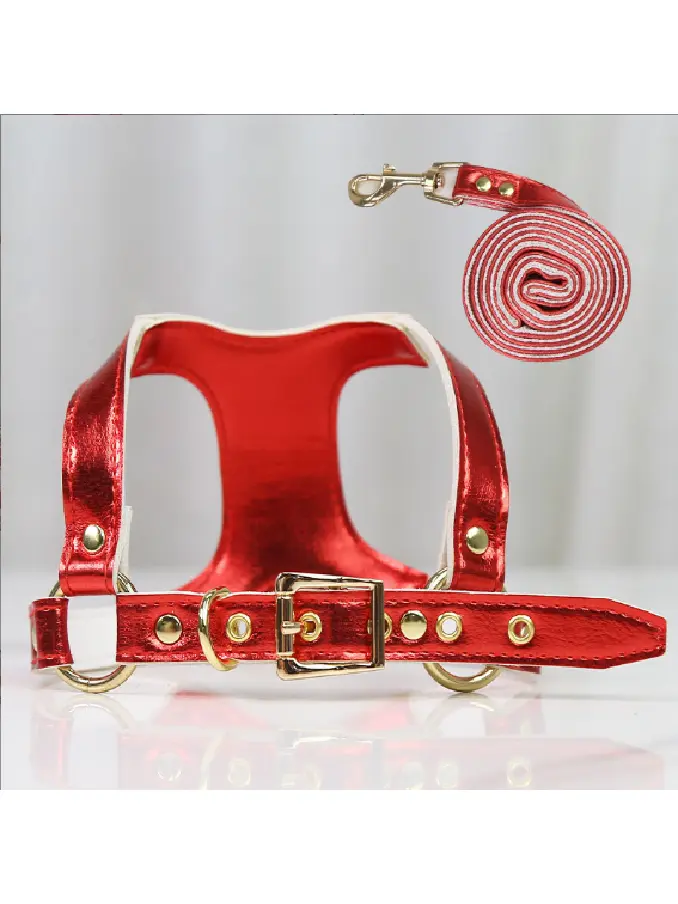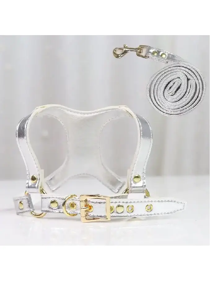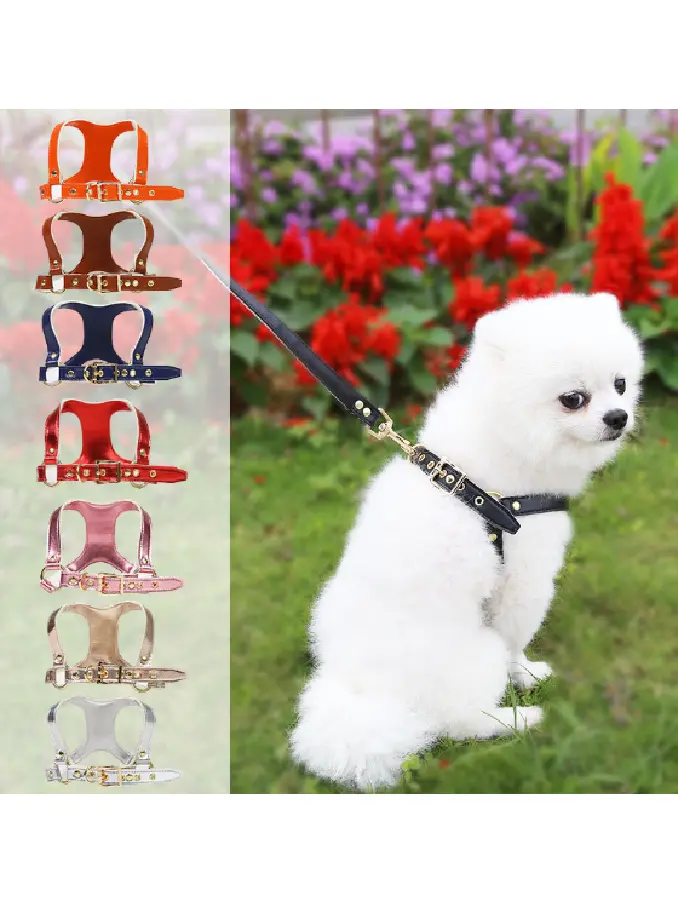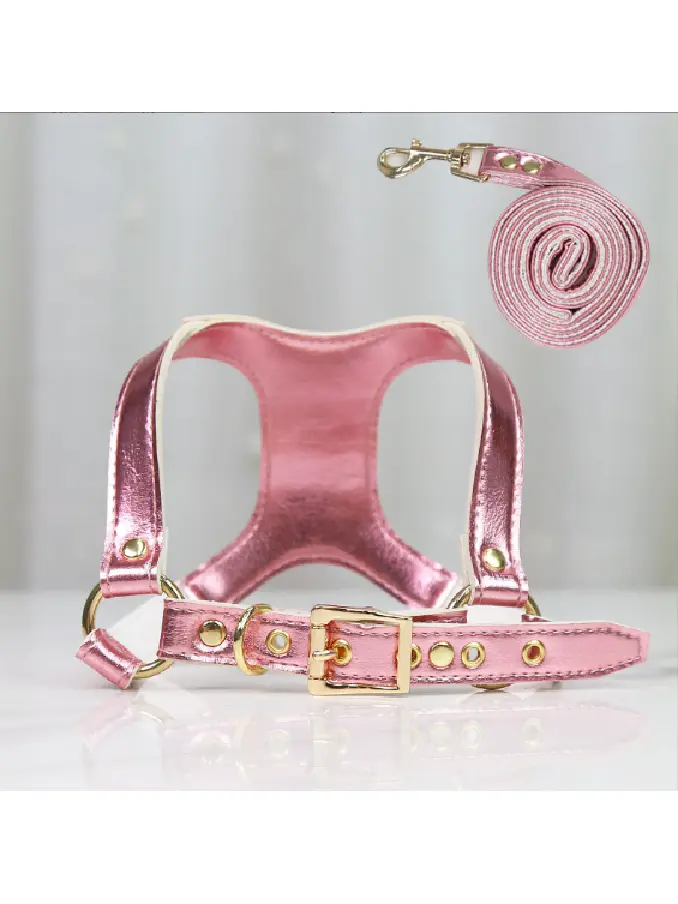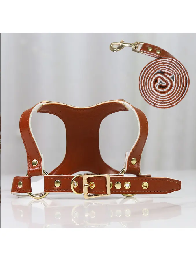 PU Pet Leash Luxury Adjustable Fashion Soft Pet Cat Dog Collar Harness Vest and leash set