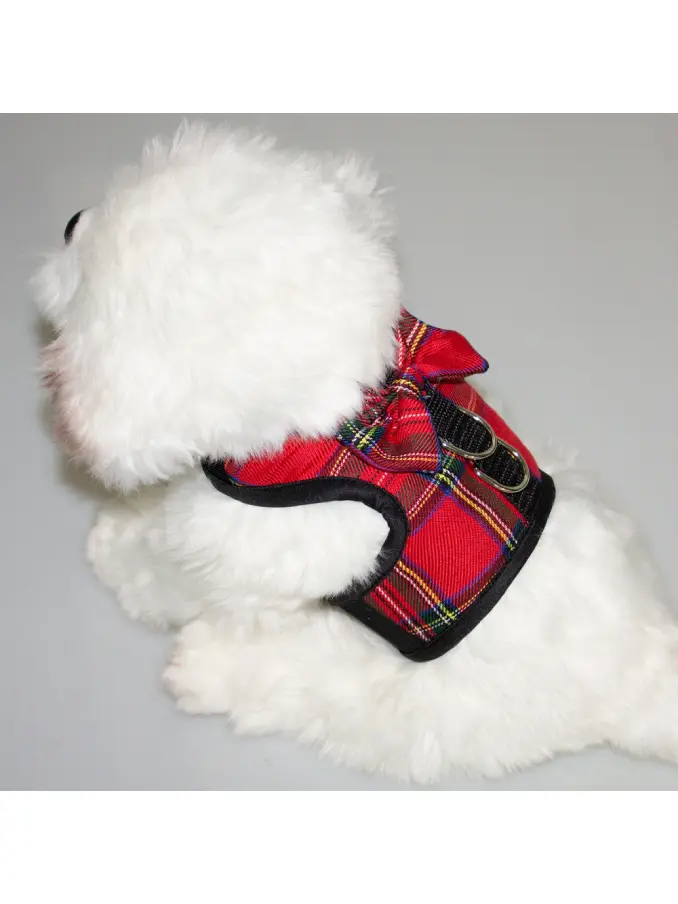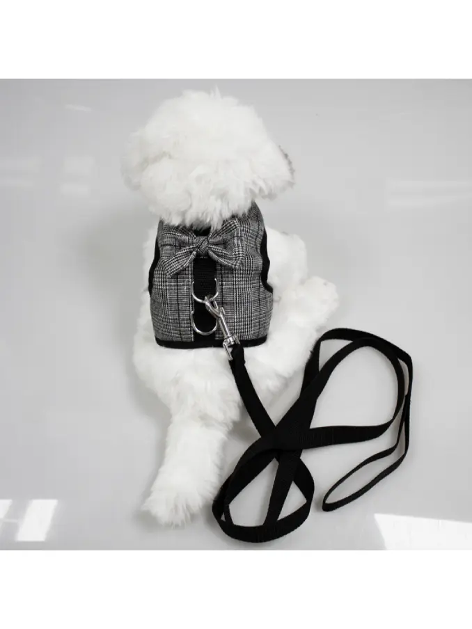 Comfortable plaid hook and loop fasteners breathe pet harness leash set pet vest