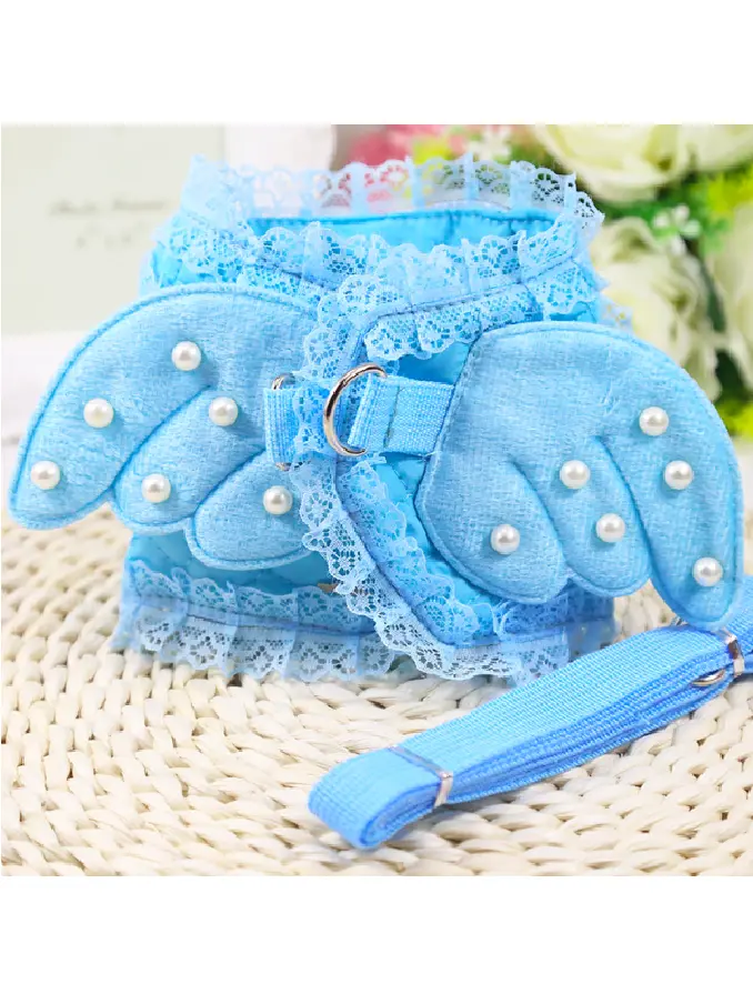 Cute Pet Dog Angel Wings Dog Harness with dog chain rope and pearls