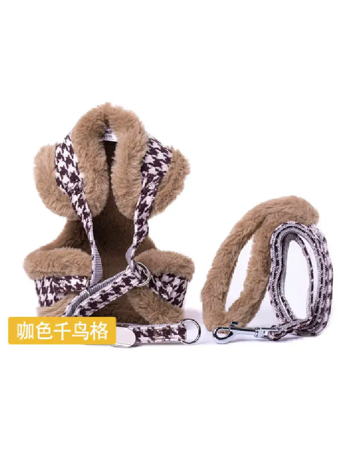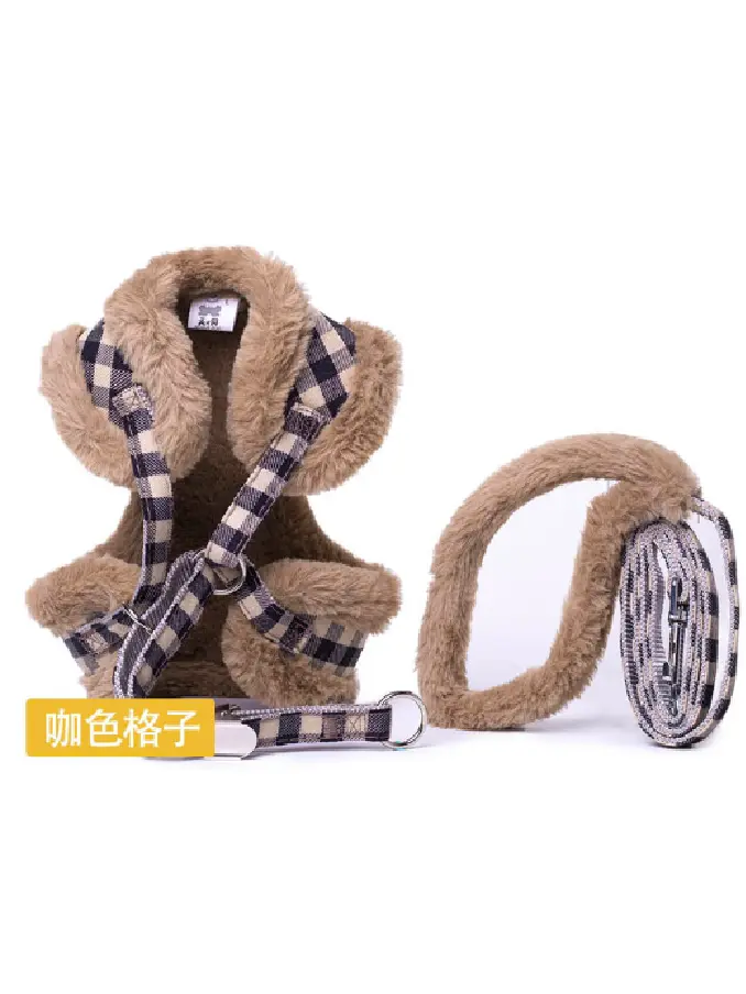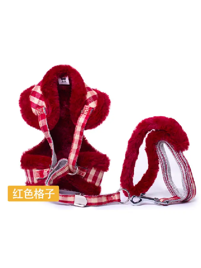 Soft Puppy Dog Cat Harness Leash Set Warm Padded Plaid Pet Harnesses Vest Christmas For Small Medium Dogs