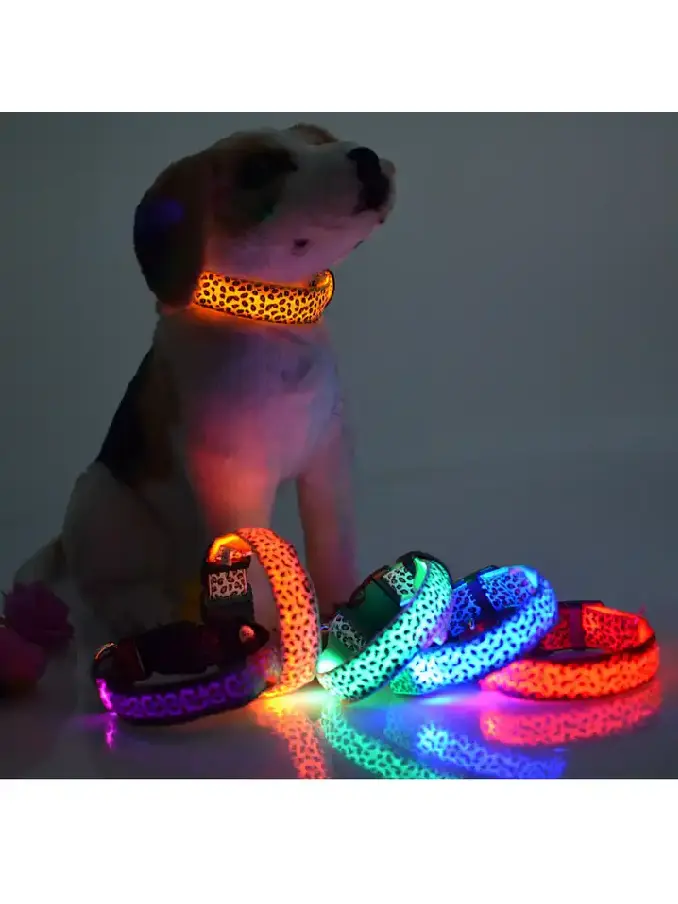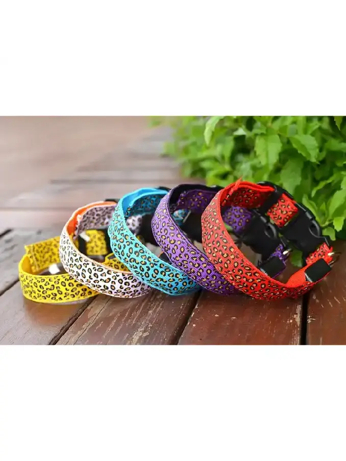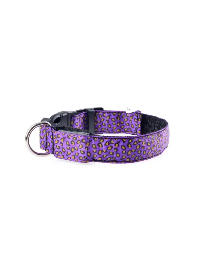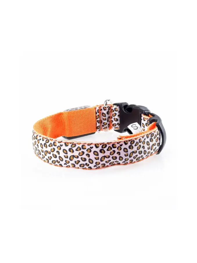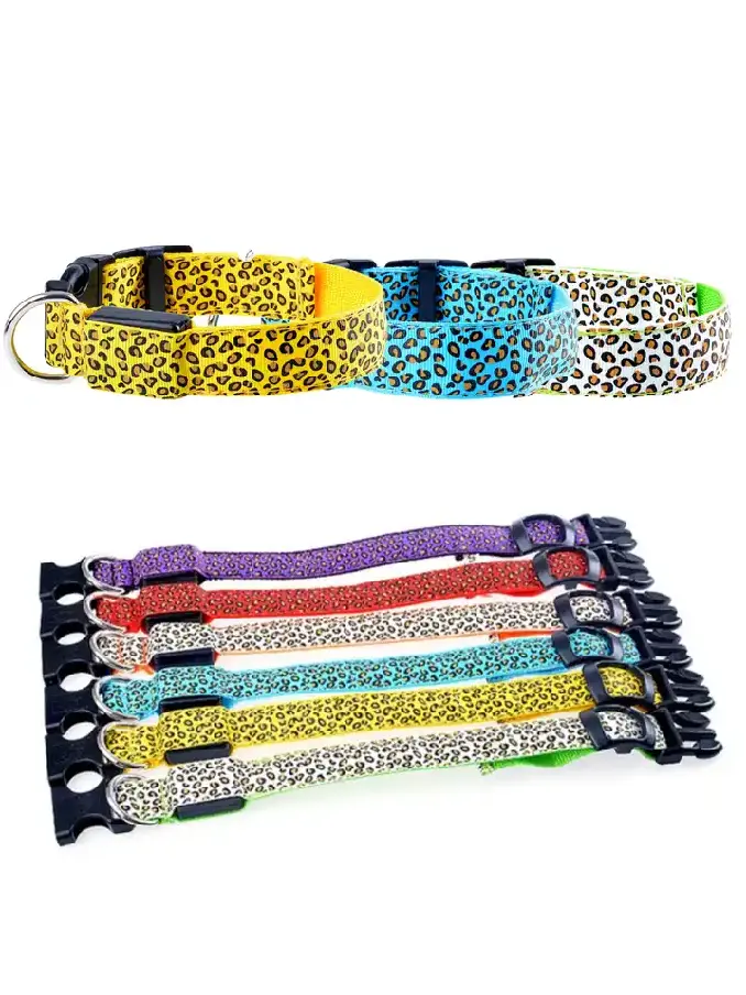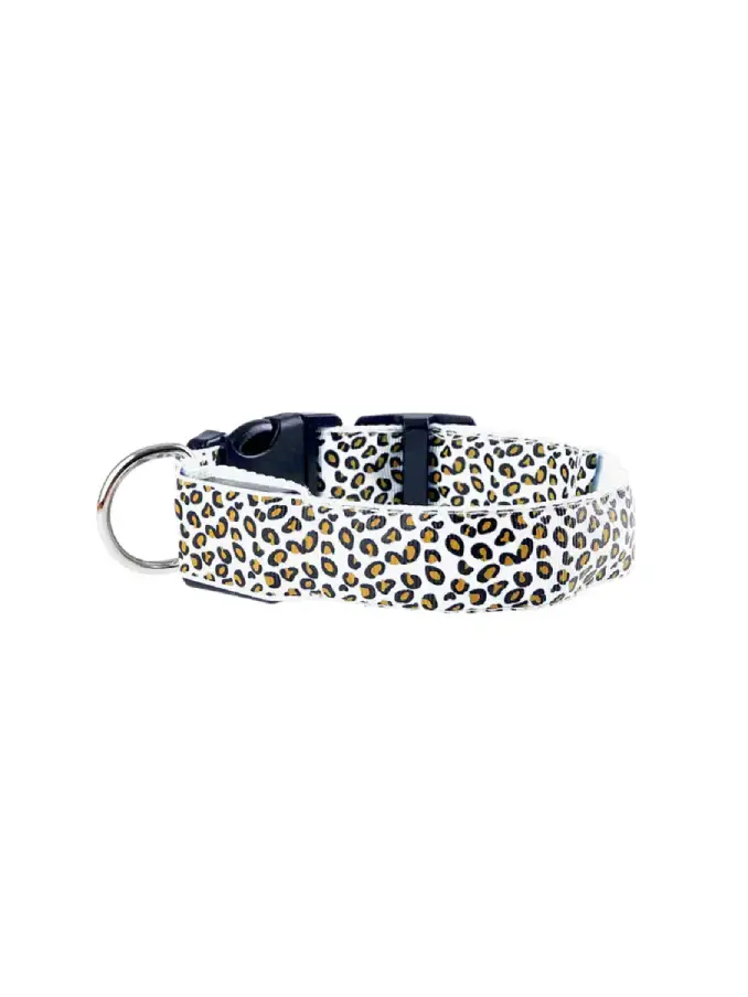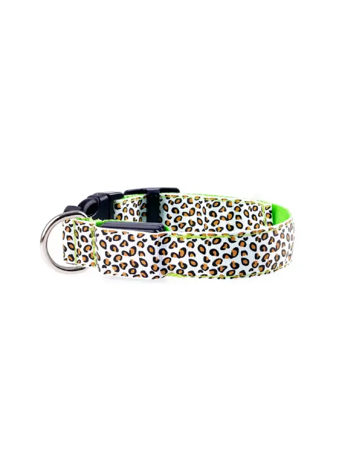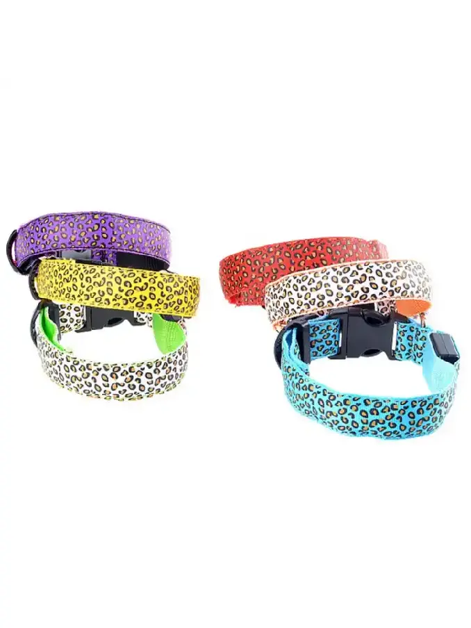 Leopard Print LED Dog Collar USB Recharging Dog Night Safety Collar