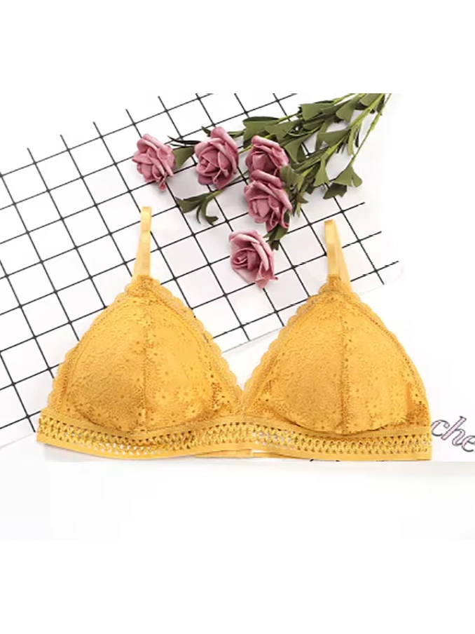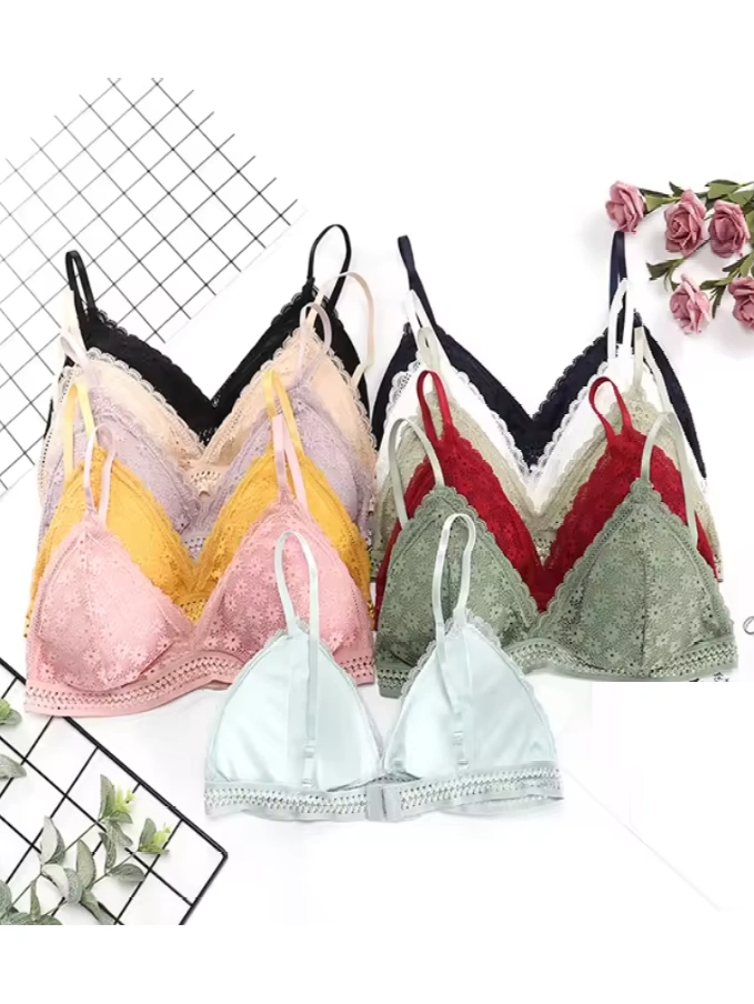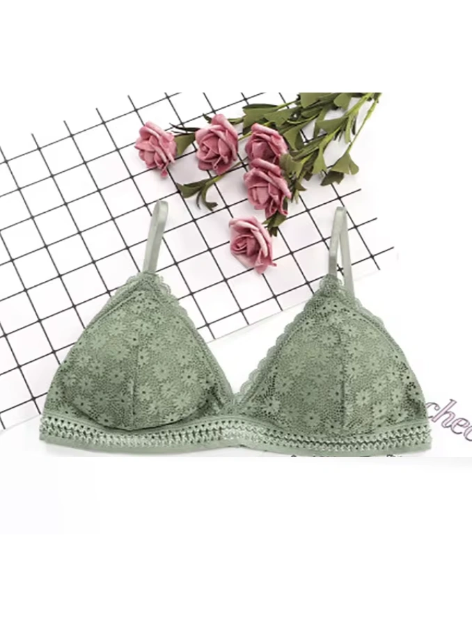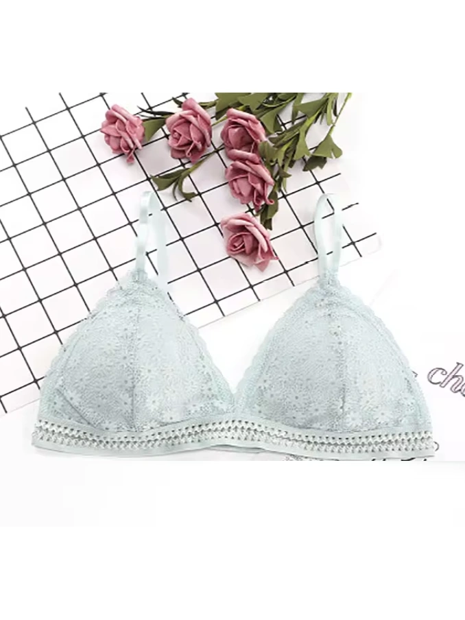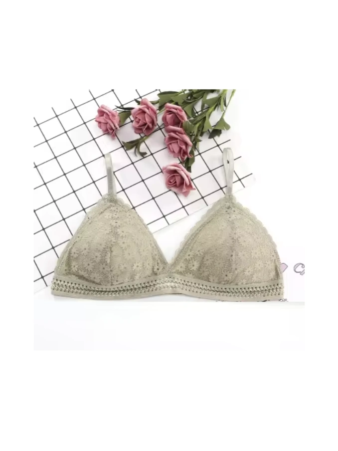 Lace Wire Free Lingerie Triangle Cups Nylon Bra With Removable Padded Underwear For Women