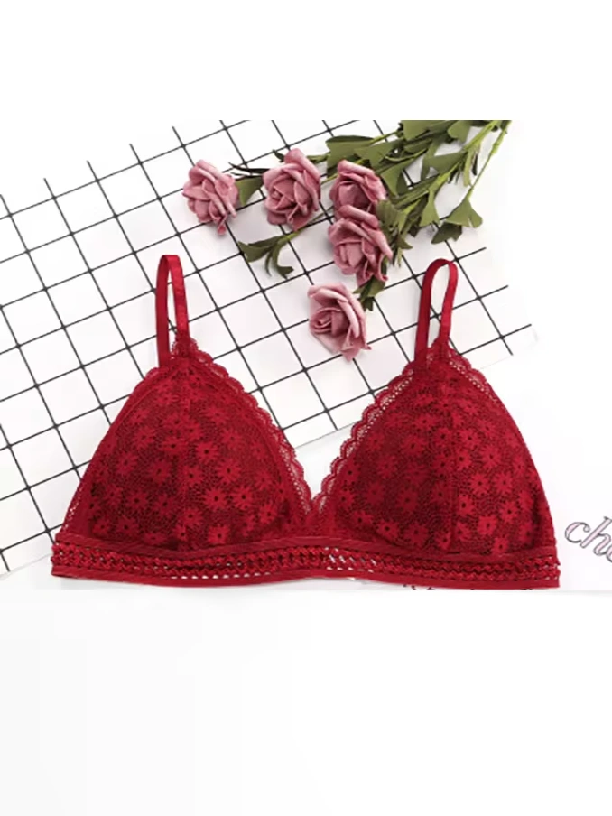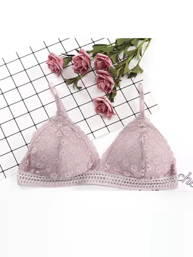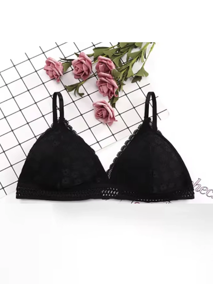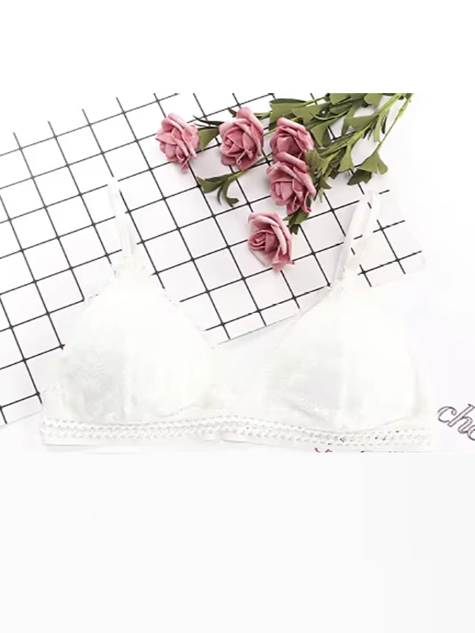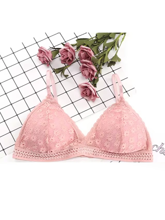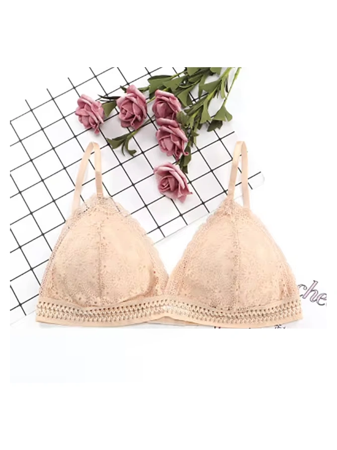 Lace Wire Free Lingerie Triangle Cups Nylon Bra With Removable Padded Underwear For Women