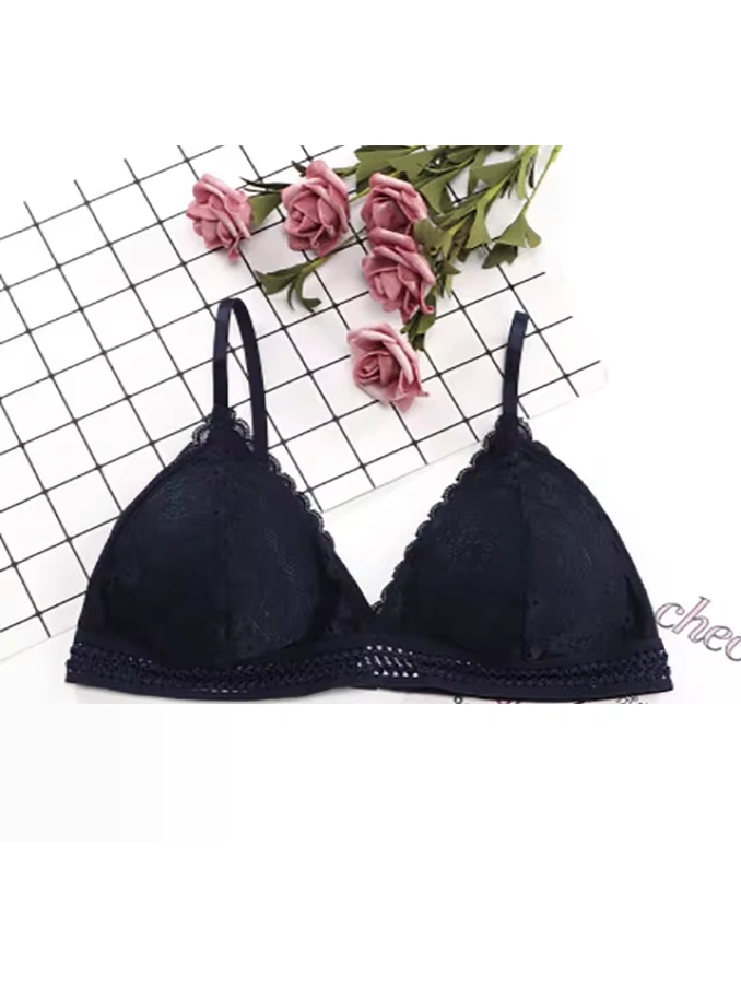 Lace Wire Free Lingerie Triangle Cups Nylon Bra With Removable Padded