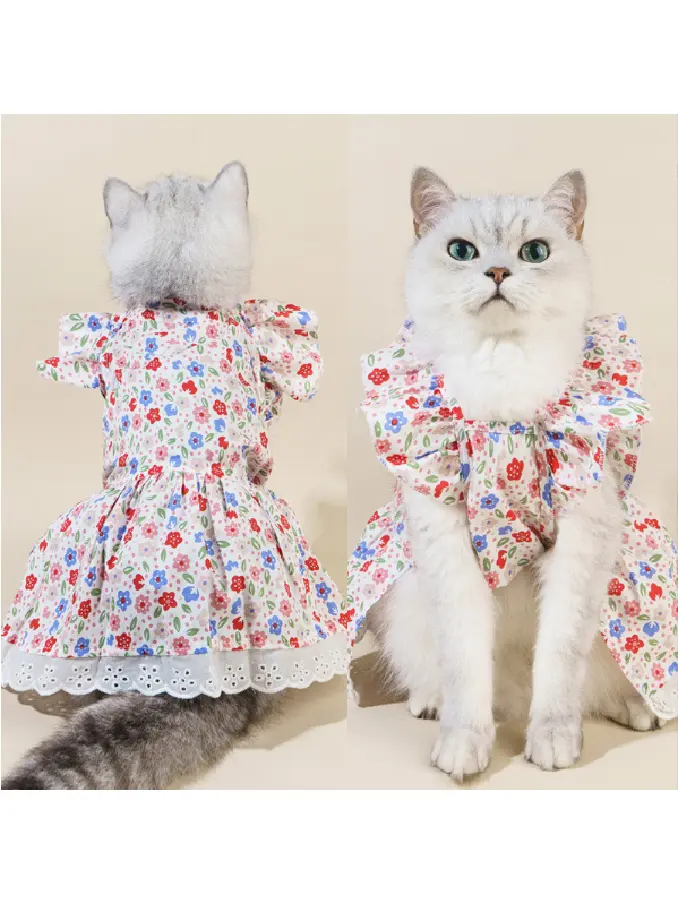 New Design Summer Retro Unique Court Cottonpet Dress Cat Dog Clothes