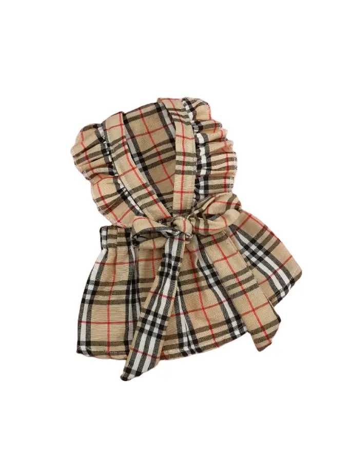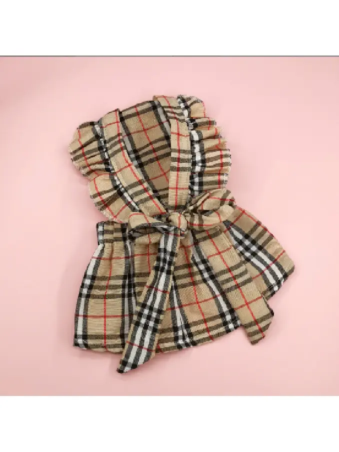 Plaid jk bowknot vest dog cat designer pet clothing dress