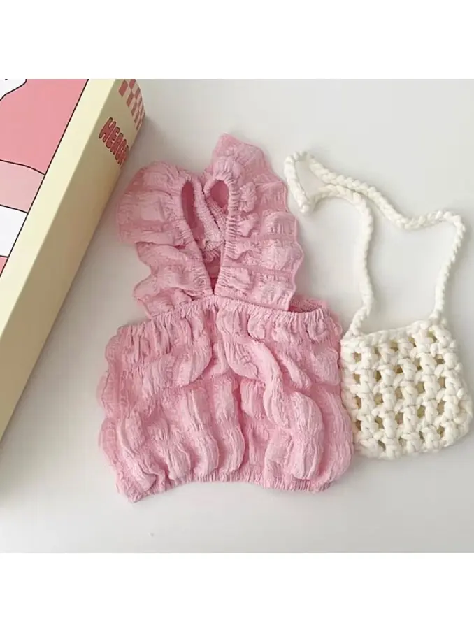 New Korean Style Summer Macaron Bubble Pet Plaid Sling Dress Dog Cute Clothes Dog Strap Dress