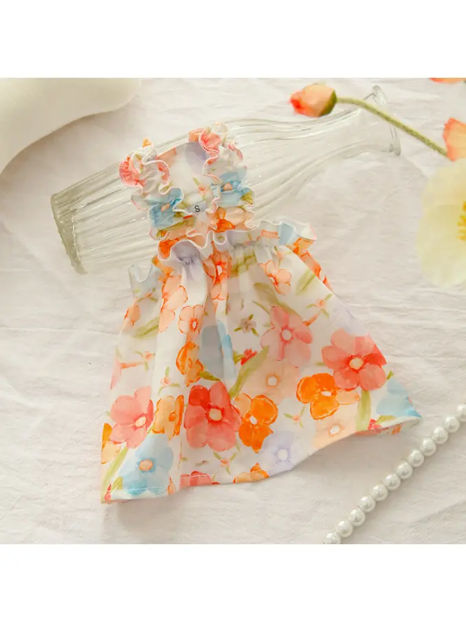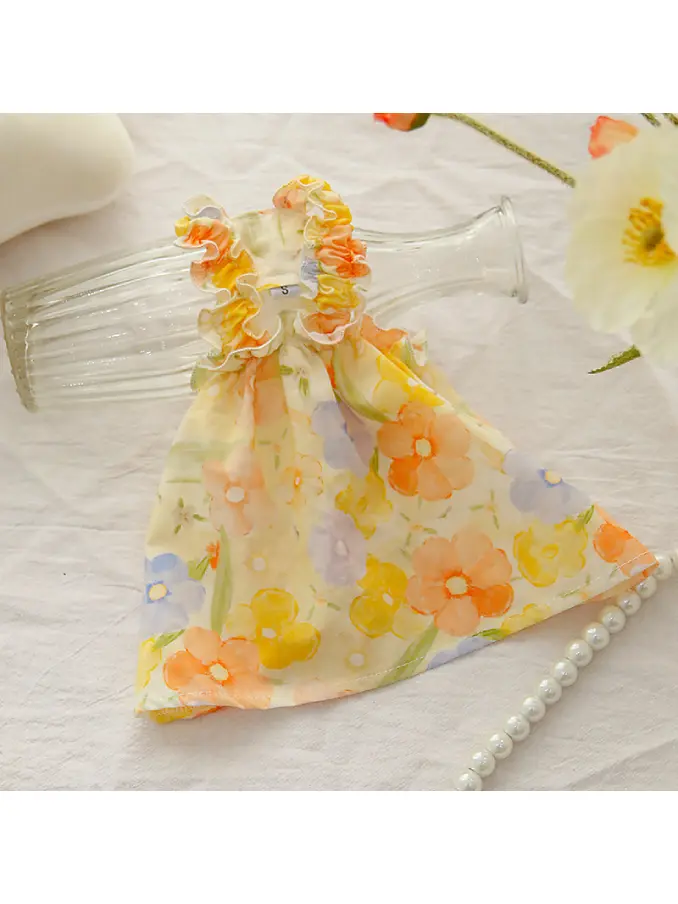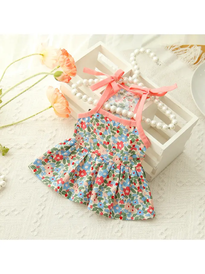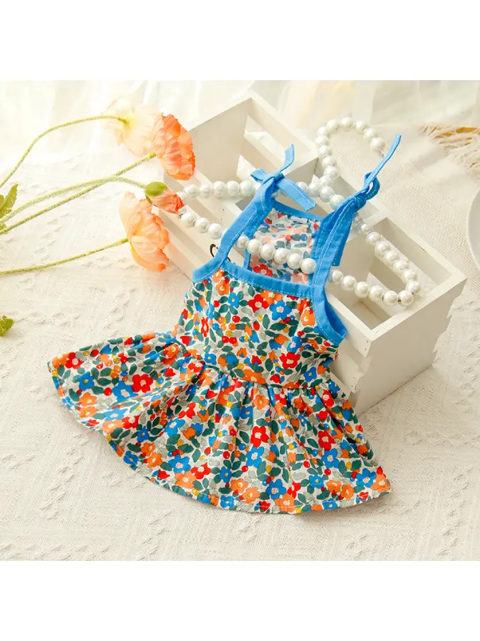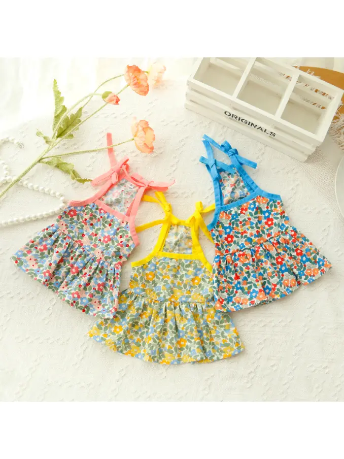 Pet summer clothes thin style cat suspender floral skirt summer small dog teddy cat vest
