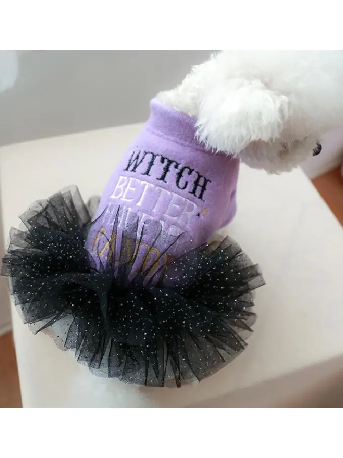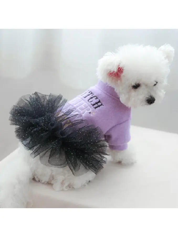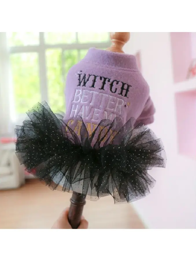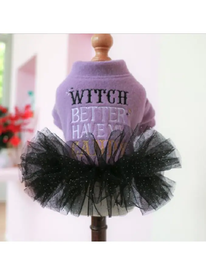 Pet clothes Dog dress Halloween dress candy embroidered lace black border cat and dog costumes