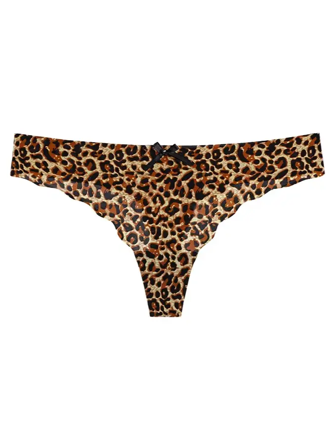 Women Underwear Seamless Sexy Thongs Underwear Ice Silk Leopard Print Plus Size Comfy G-String Panties