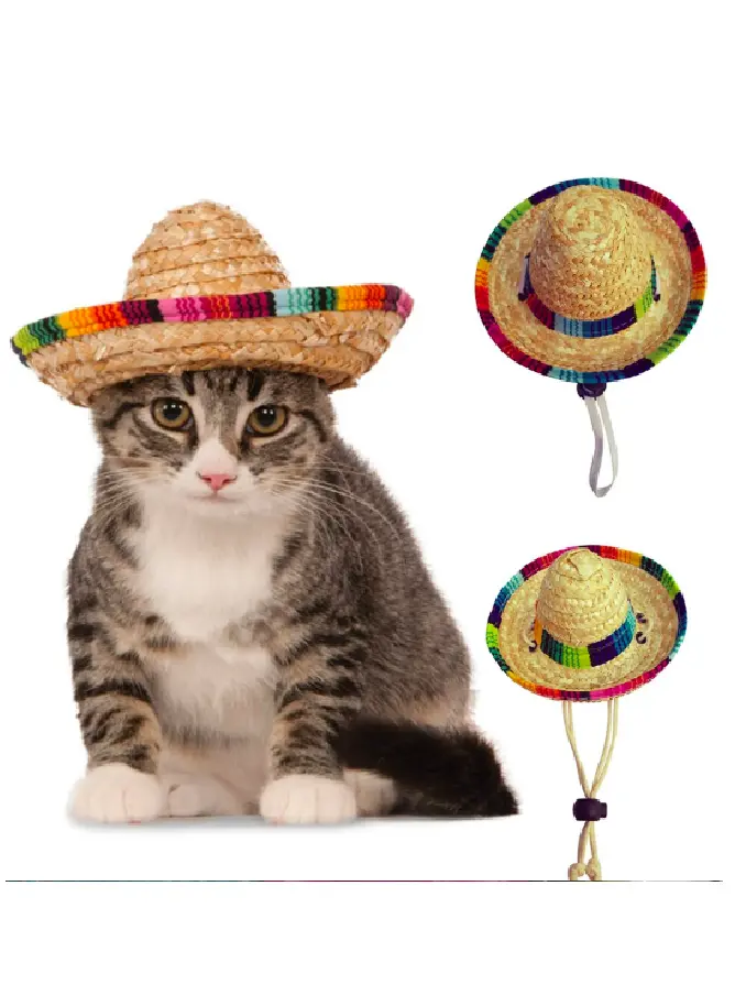 Mini Pet Dogs Straw Hat Sombrero Cat Sun Hat for Beach Party Straw Hats