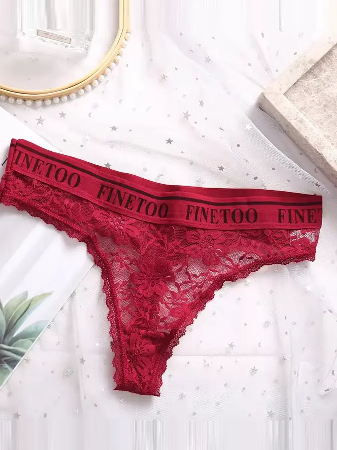 Ladies Thong Fashion Letter Lace Sexy Transparent Women's Panties G String Plus Size