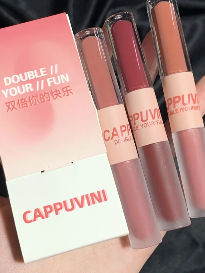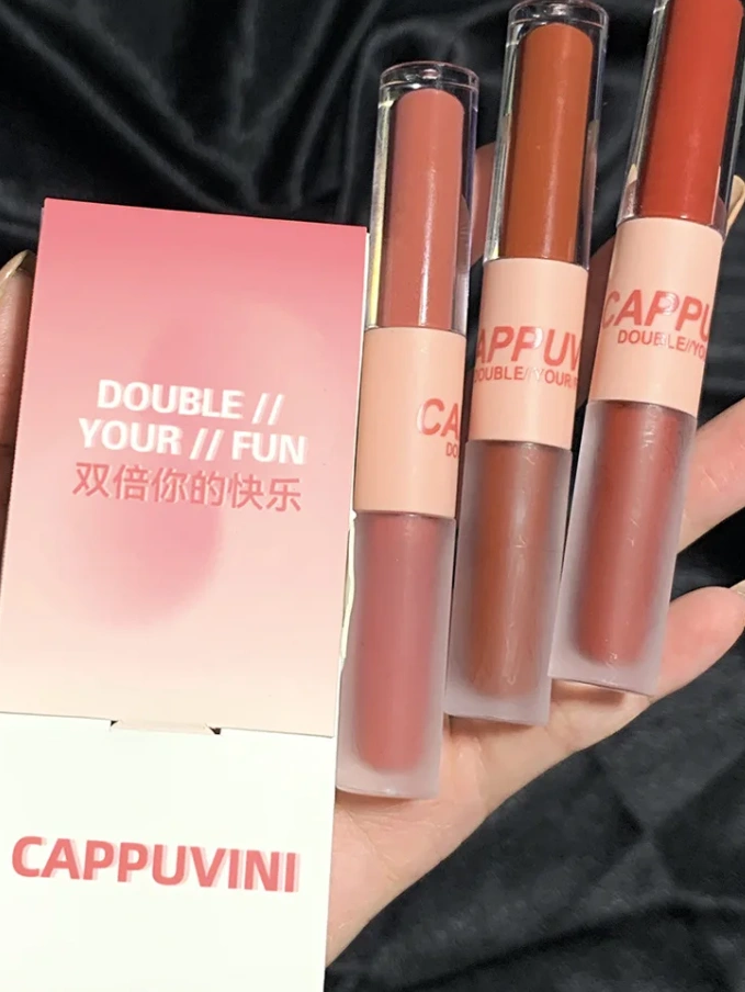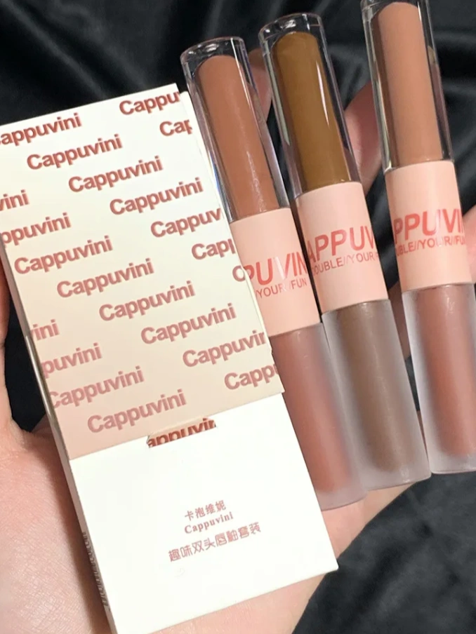 Cappuvini Double-headed lip glaze Chestnut lip Mud Mirror water lip gloss matte student lipstick 3 pcs /SET
